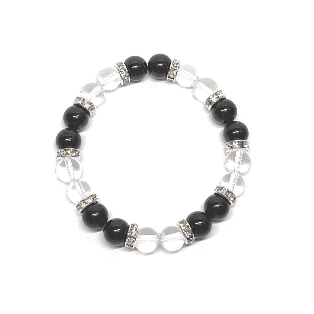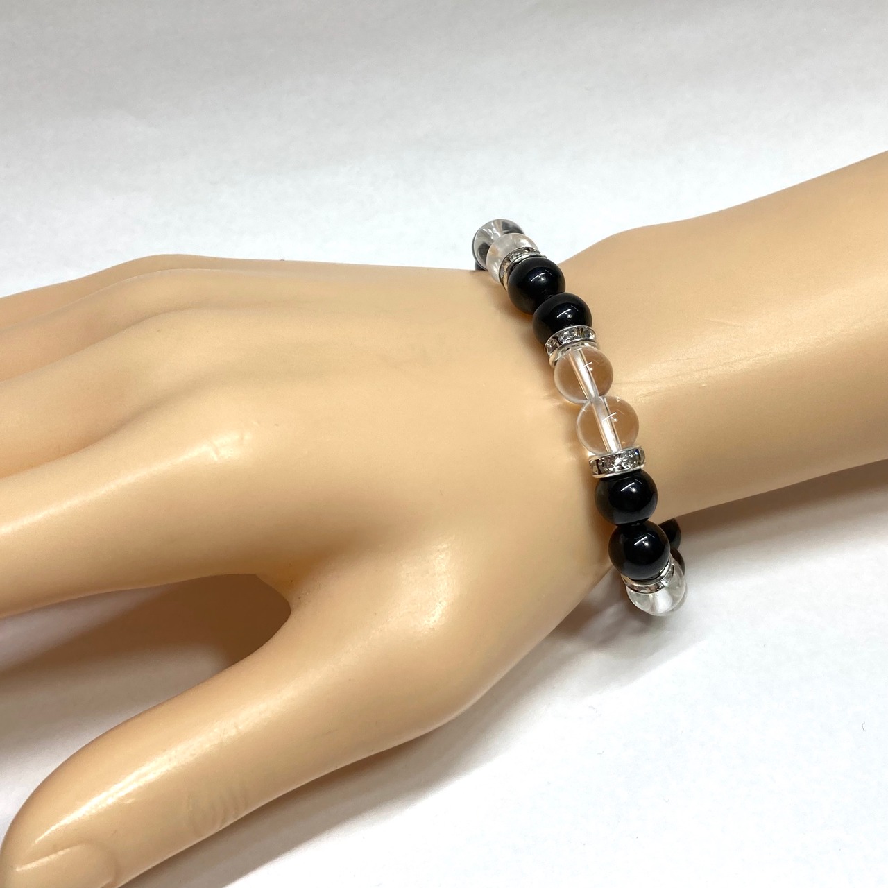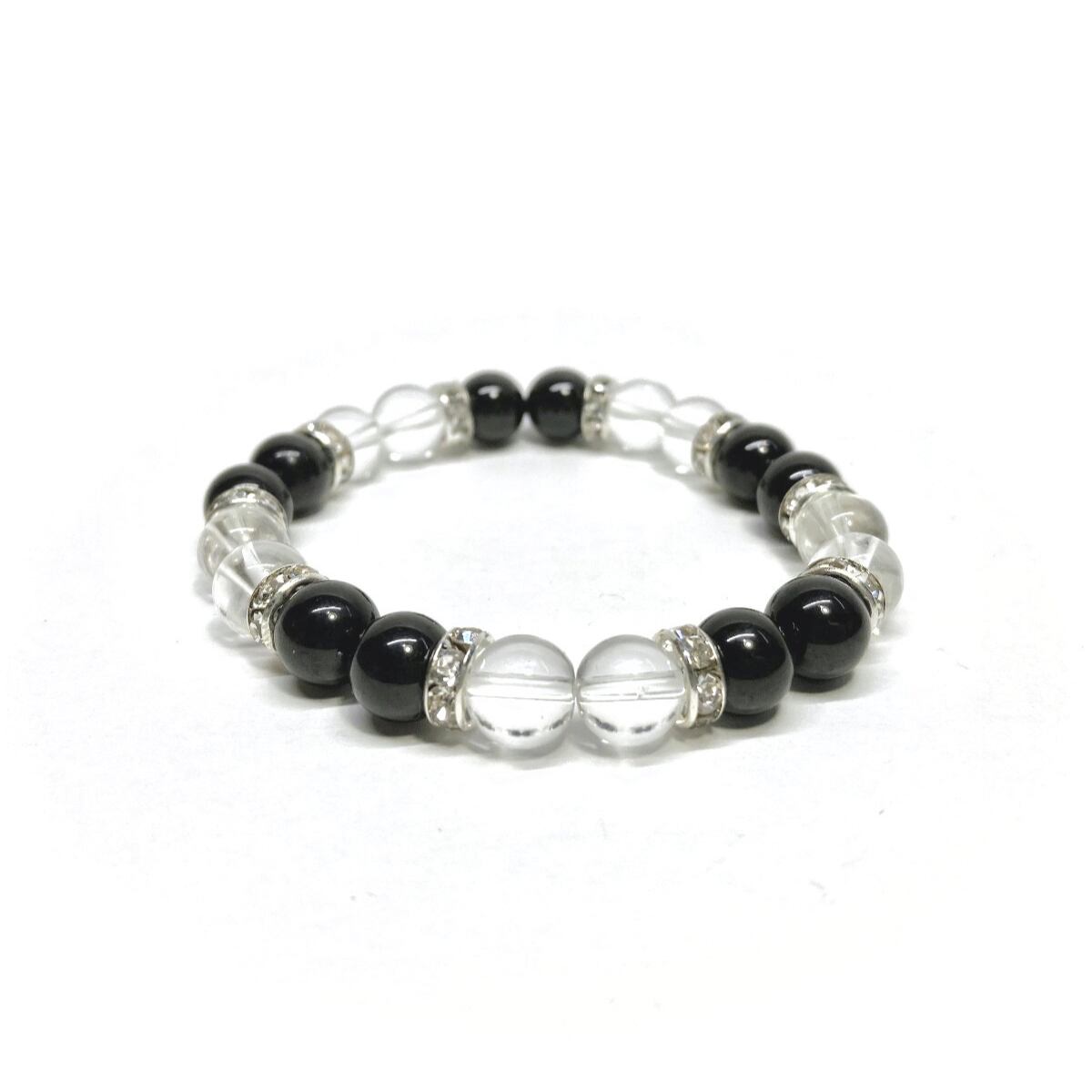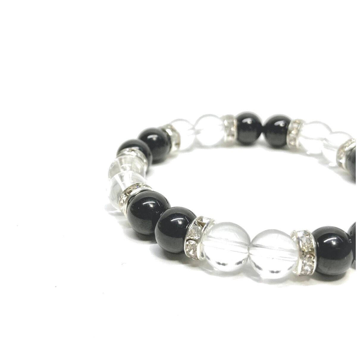 モリオン&水晶 パワーストーン ブレスレット 天然石ブレス (シルバー) 8mm レディース 女性 数珠ブレス 開運 プレゼント ギフト