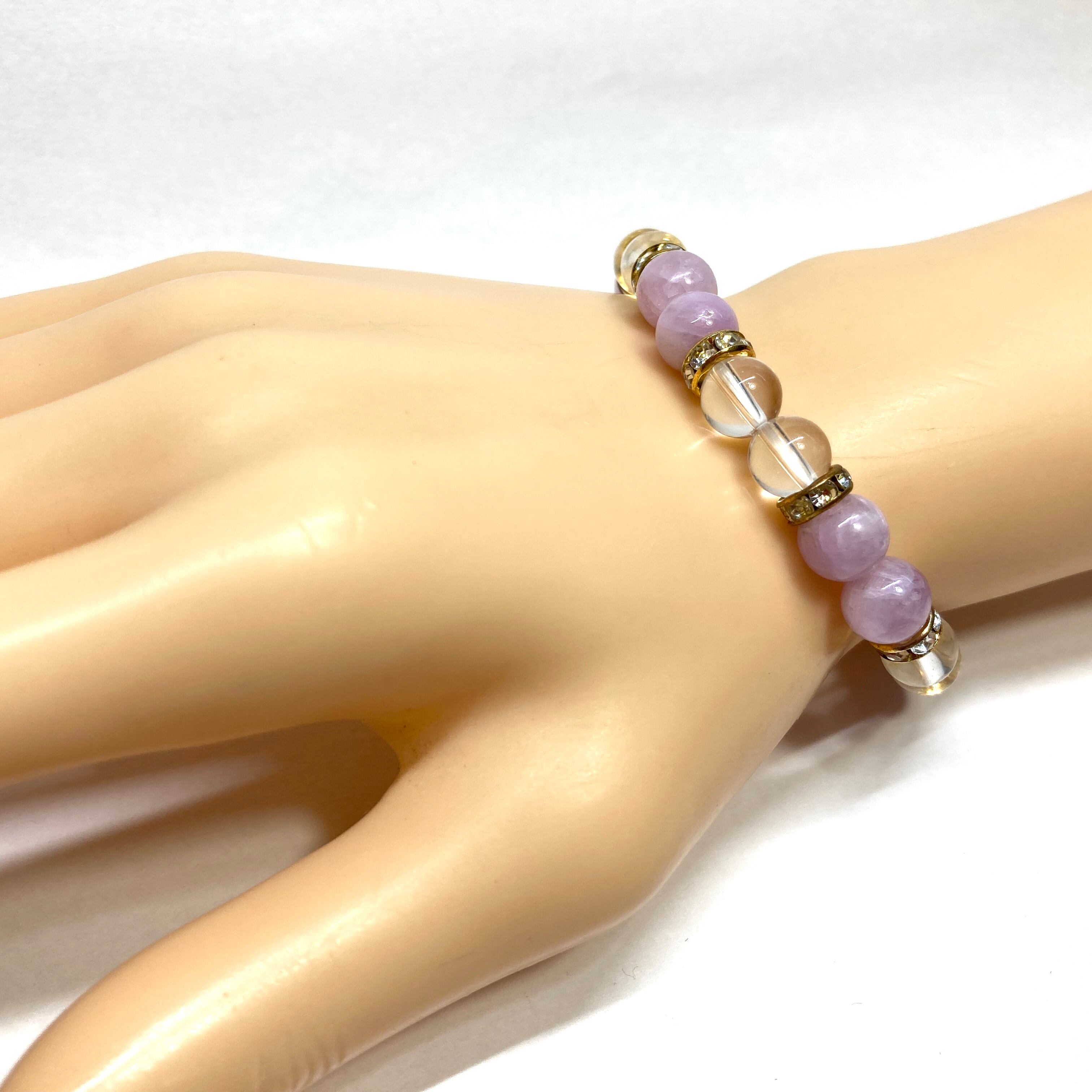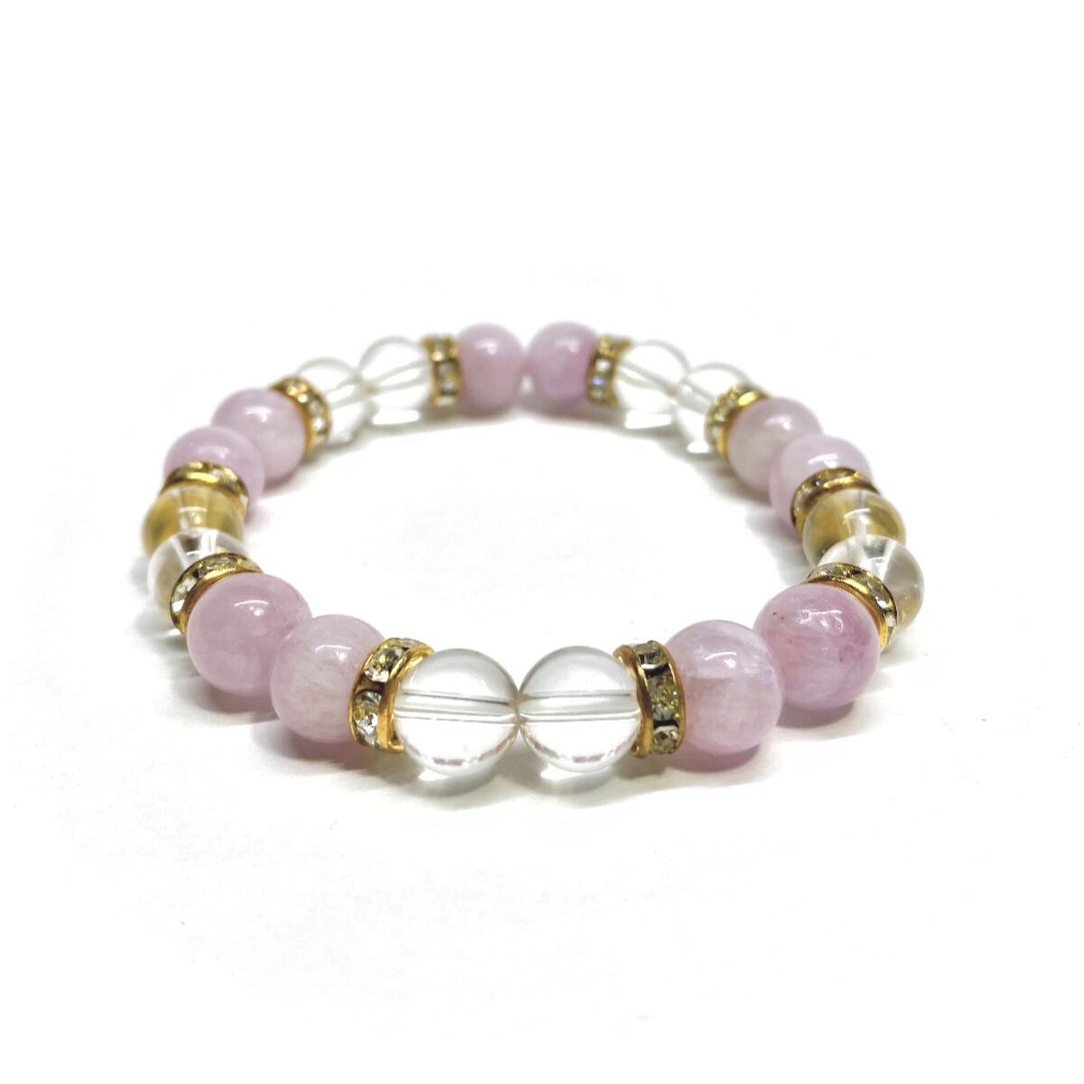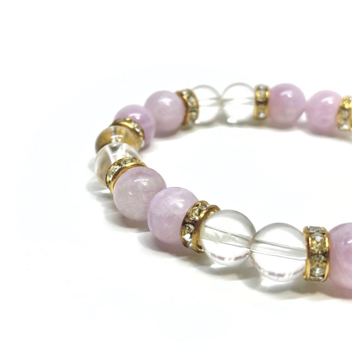 クンツァイト&水晶 パワーストーン ブレスレット 天然石ブレス (ゴールド) 8mm レディース 女性 数珠ブレス 開運 プレゼント ギフト