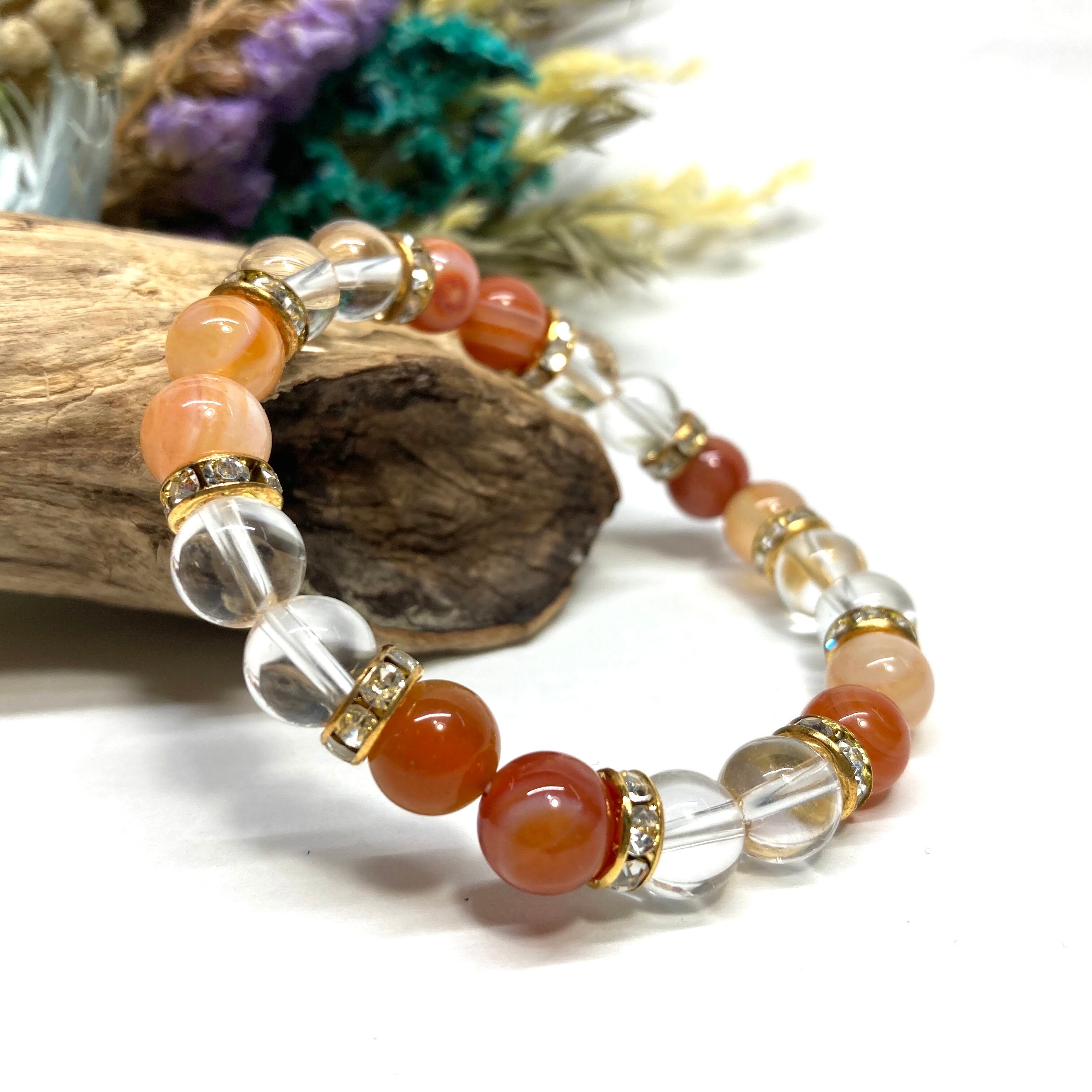 カーネリアン・サードニクス(サードオニキス)&水晶 パワーストーン ブレスレット 天然石ブレス (ゴールド) 8mm レディース 女性 数珠ブレス 開運 プレゼント ギフト