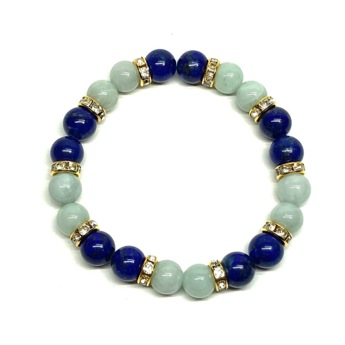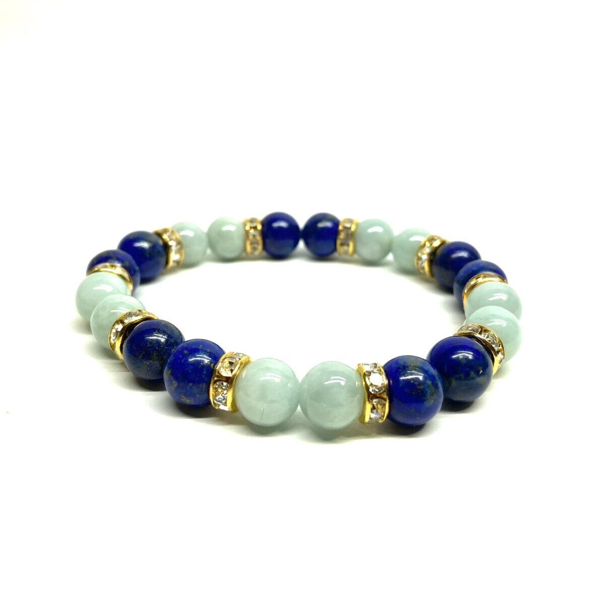 ラピスラズリ&ビルマ翡翠 パワーストーン ブレスレット 天然石 (ゴールド) 8mm レディース 女性 数珠ブレス 開運 プレゼント ギフト