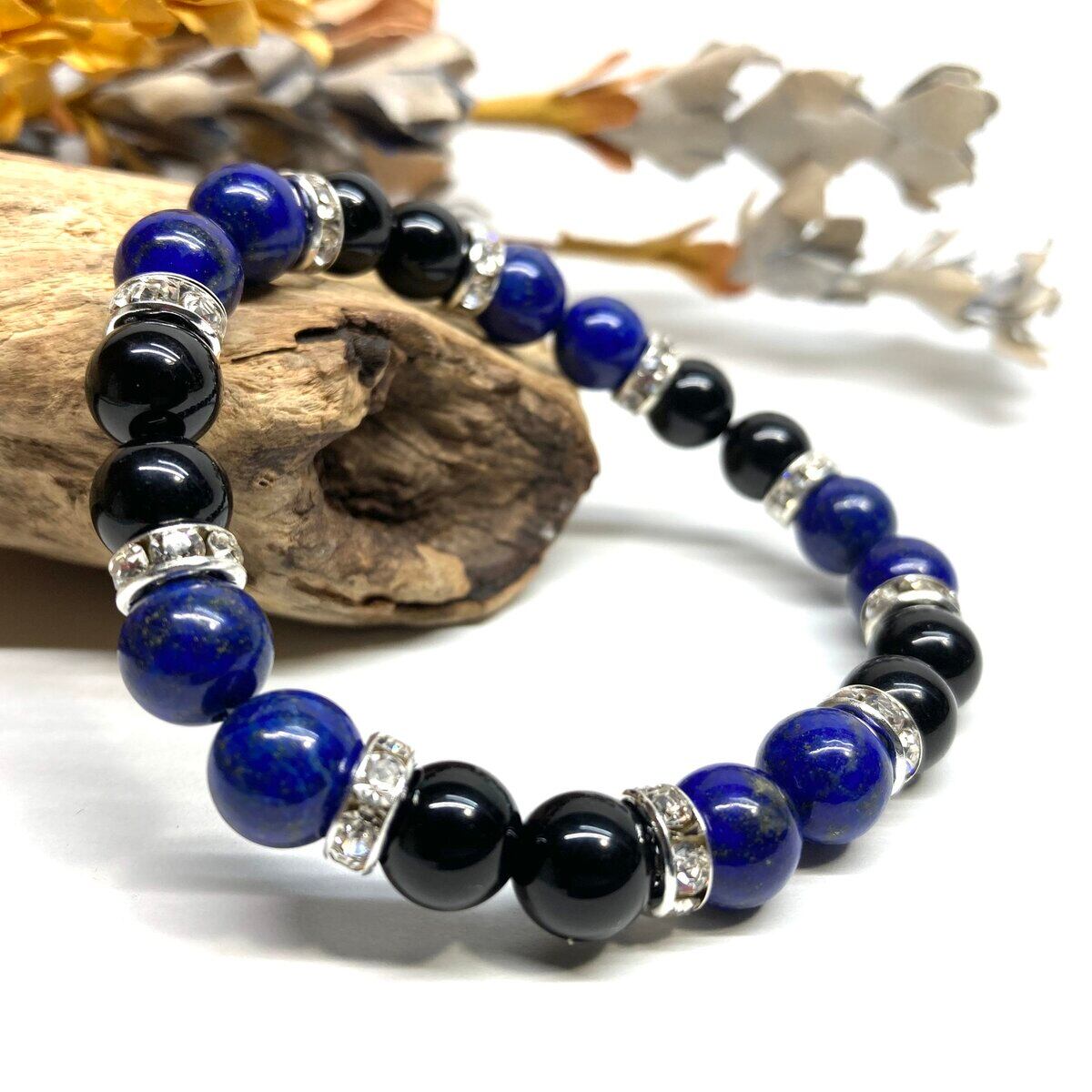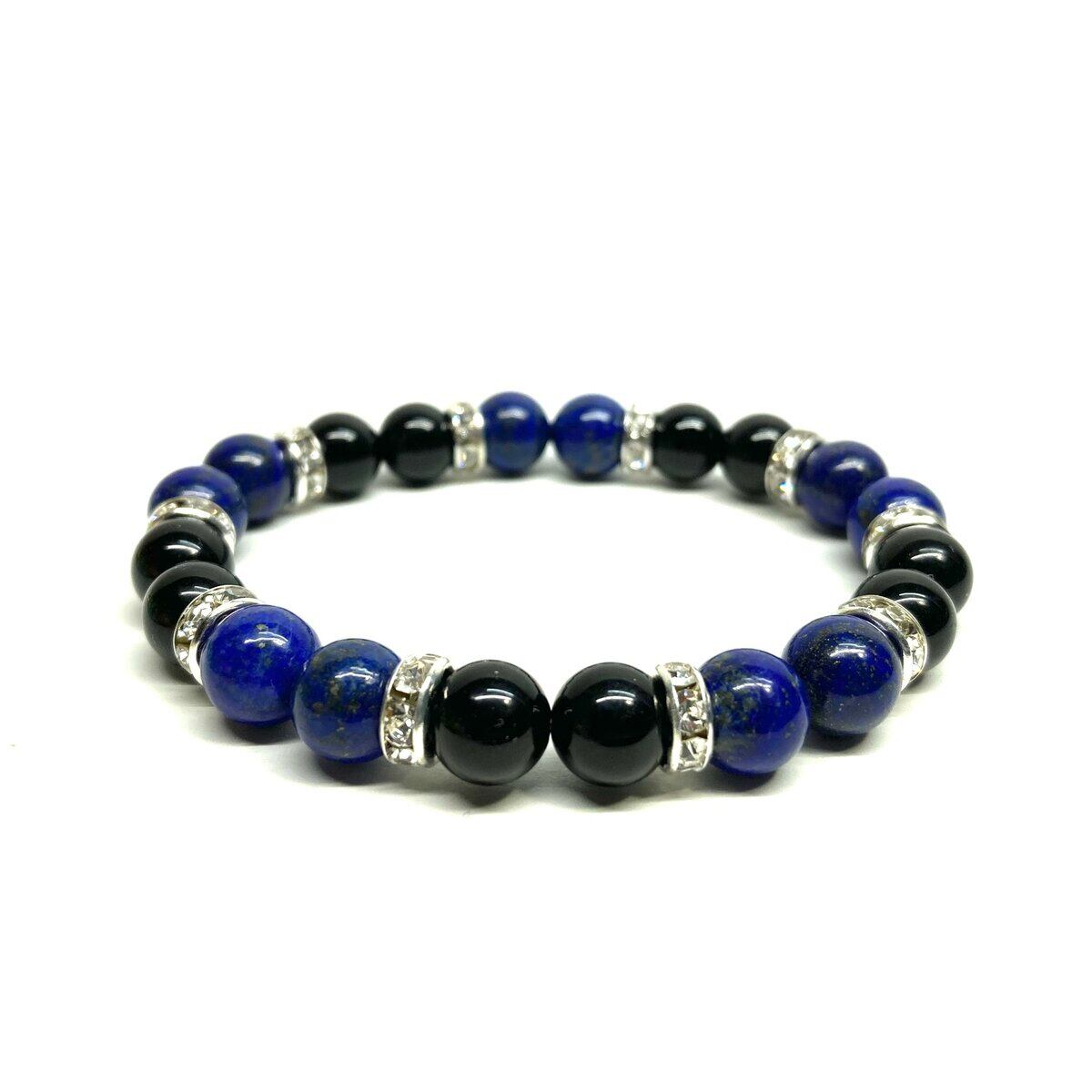 こちらは、8mm玉のラピスラズリとモリオン を使ったパワーストーンブレスレットです。シンプルなデザインでどんなコーディネートにも合わせやすいデザインに仕上げています。サイズは内周 約15cmです。気になる方は是非この機会にどうぞ。