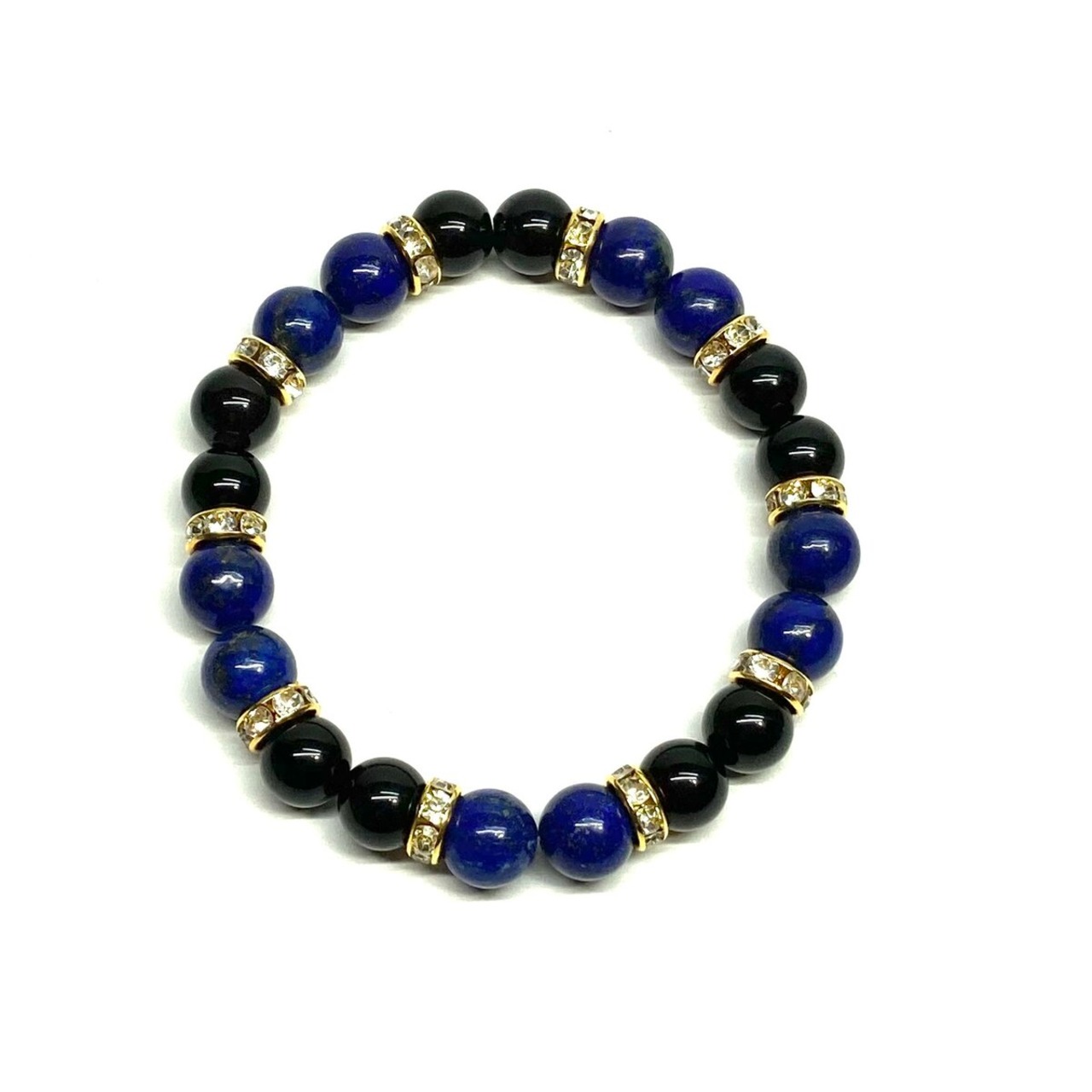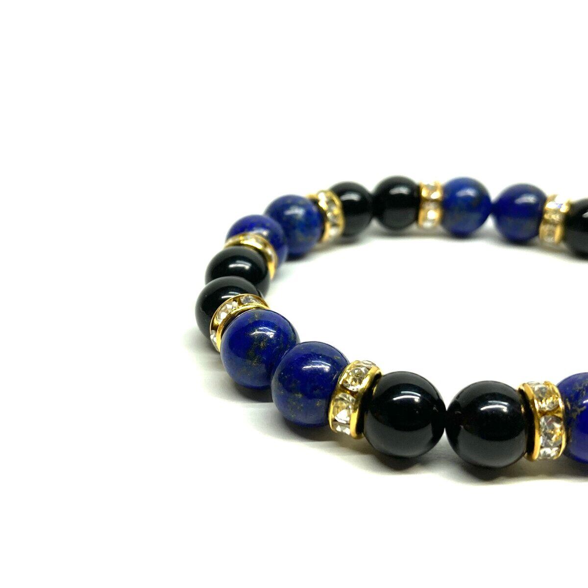 こちらは、8mm玉のラピスラズリとモリオン を使ったパワーストーンブレスレットです。シンプルなデザインでどんなコーディネートにも合わせやすいデザインに仕上げています。サイズは内周 約15cmです。気になる方は是非この機会にどうぞ。