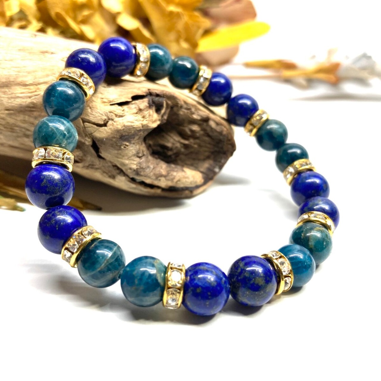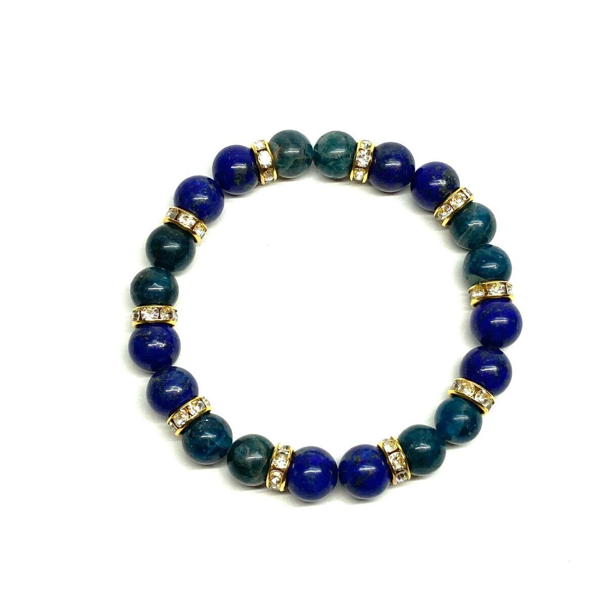 ラピスラズリ&アパタイト パワーストーン ブレスレット 天然石 (ゴールド) 8mm レディース 女性 数珠ブレス 開運 プレゼント ギフト