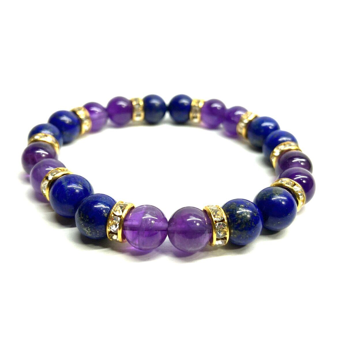 ラピスラズリ&アメジスト パワーストーン ブレスレット 天然石 (ゴールド) 8mm レディース 女性 数珠ブレス 開運 プレゼント ギフト