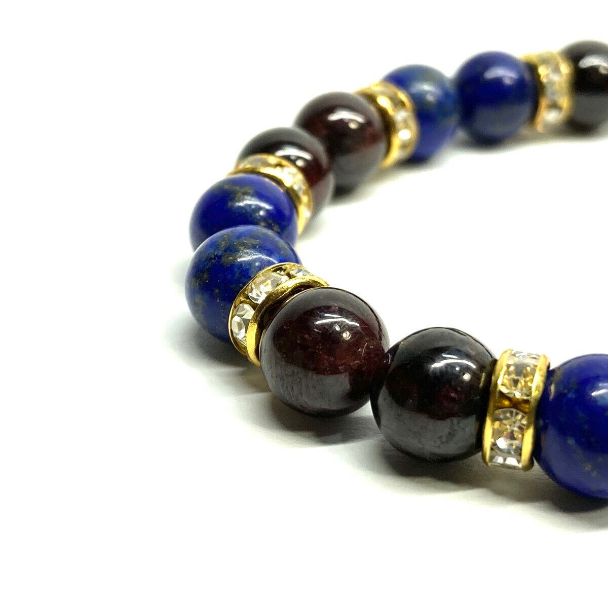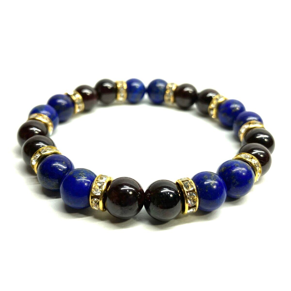 ラピスラズリ&ガーネット パワーストーン ブレスレット 天然石 (ゴールド) 8mm レディース 女性 数珠ブレス 開運 プレゼント ギフト