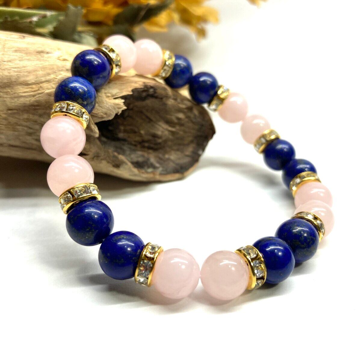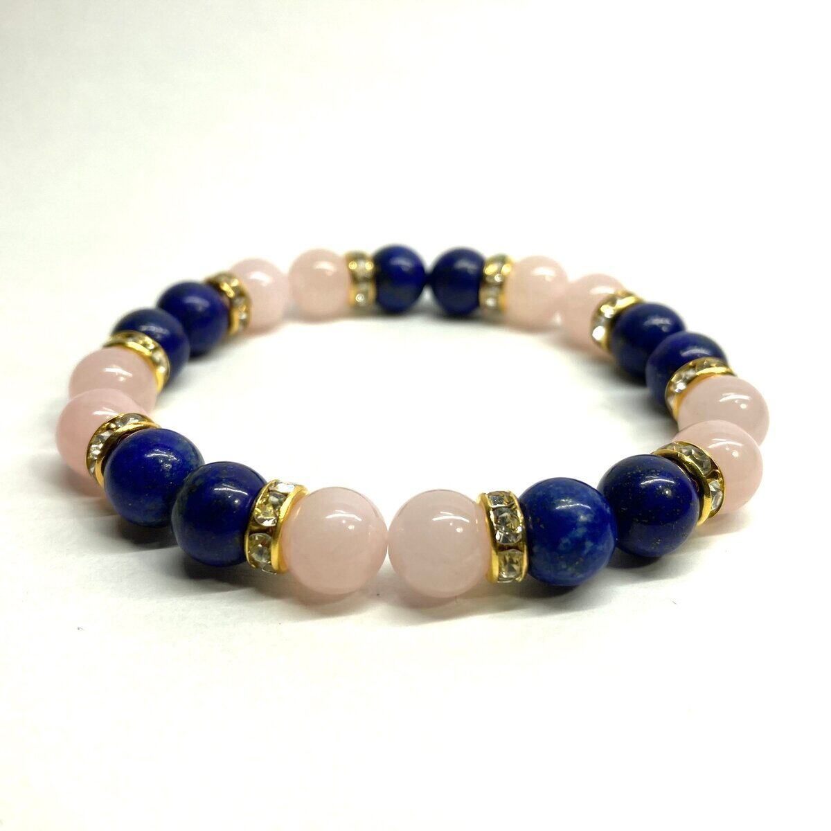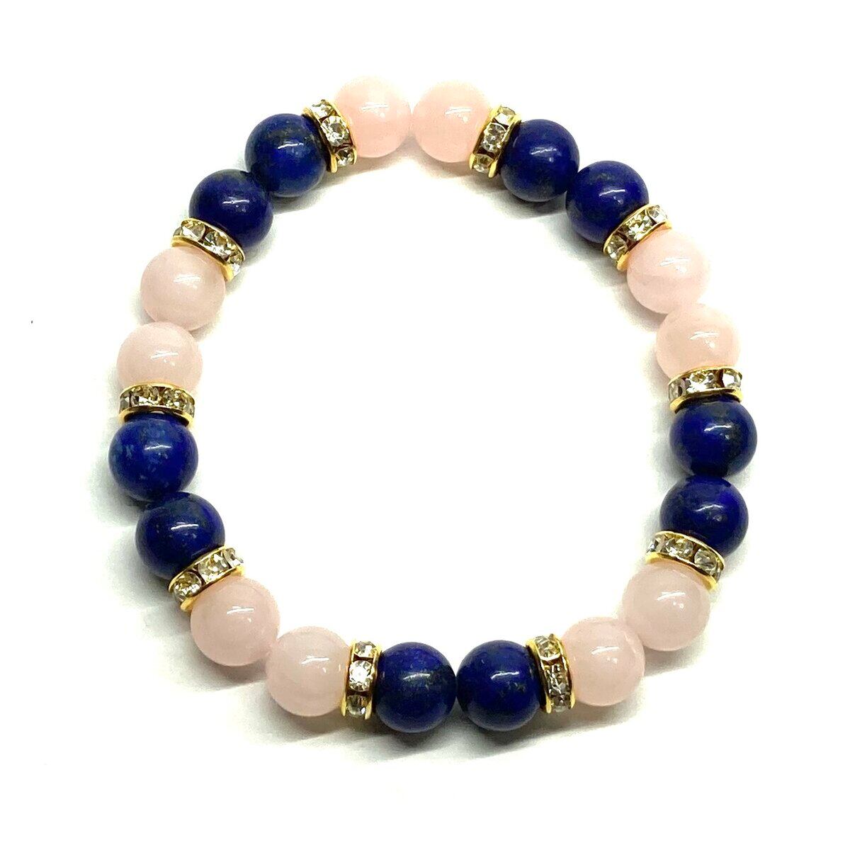 ラピスラズリ&ローズクォーツ パワーストーン ブレスレット 天然石 (ゴールド) 8mm レディース 女性 数珠ブレス 開運 プレゼント ギフト