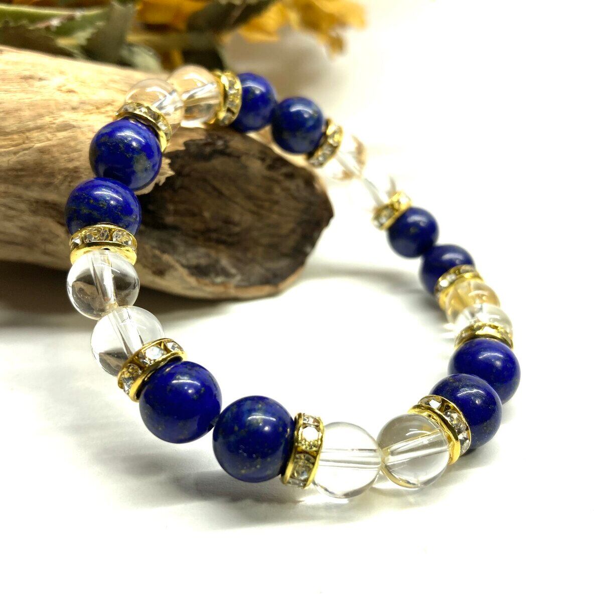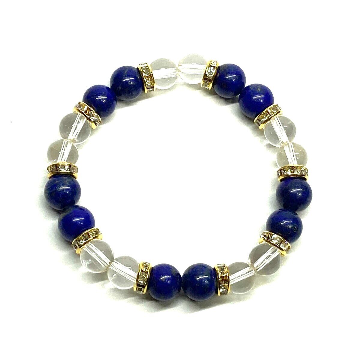 ラピスラズリ&水晶 パワーストーン ブレスレット 天然石 (ゴールド) 8mm レディース 女性 数珠ブレス 開運 プレゼント ギフト