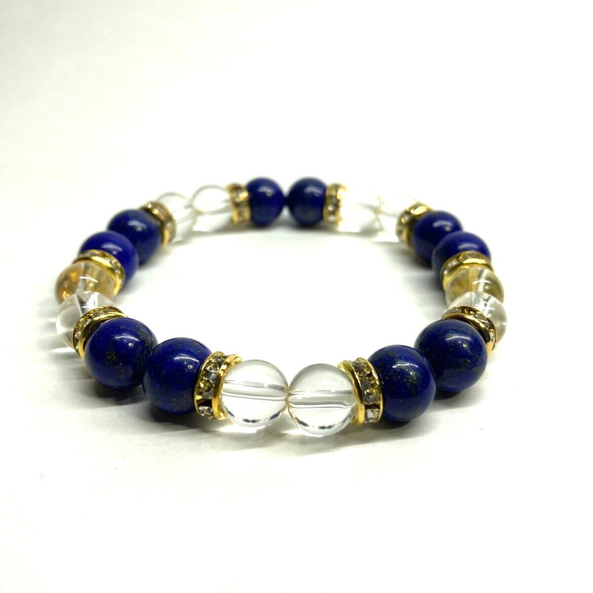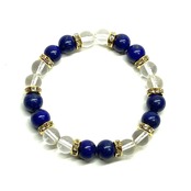 こちらは、8mm玉のラピスラズリと水晶を使ったパワーストーンブレスレットです。シンプルなデザインでどんなコーディネートにも合わせやすいデザインに仕上げています。サイズは内周 約15cmです。気になる方は是非この機会にどうぞ。