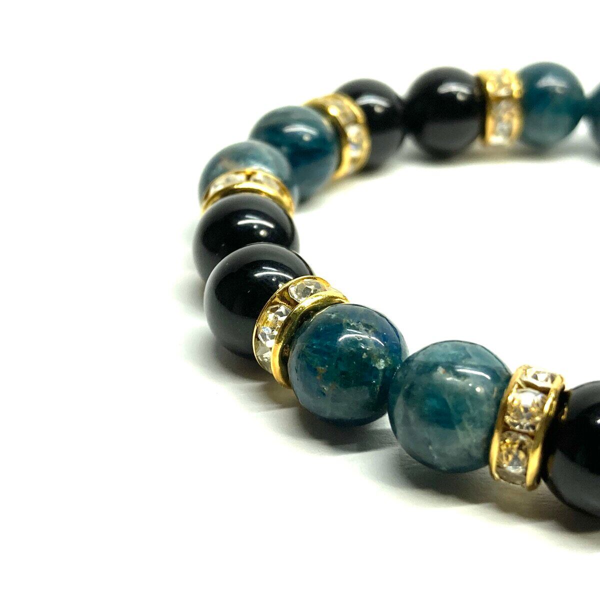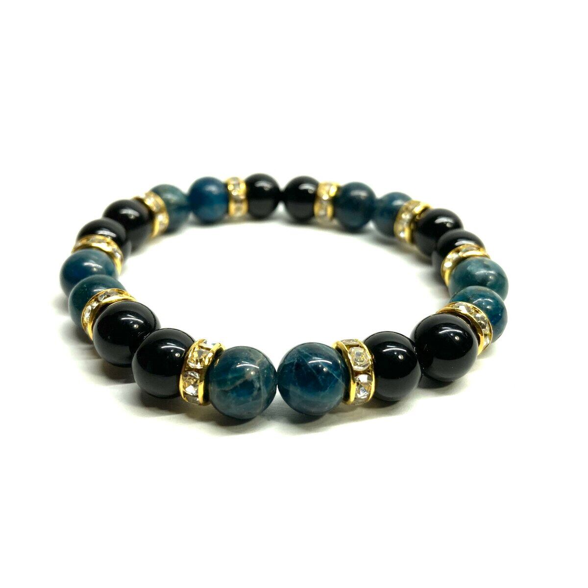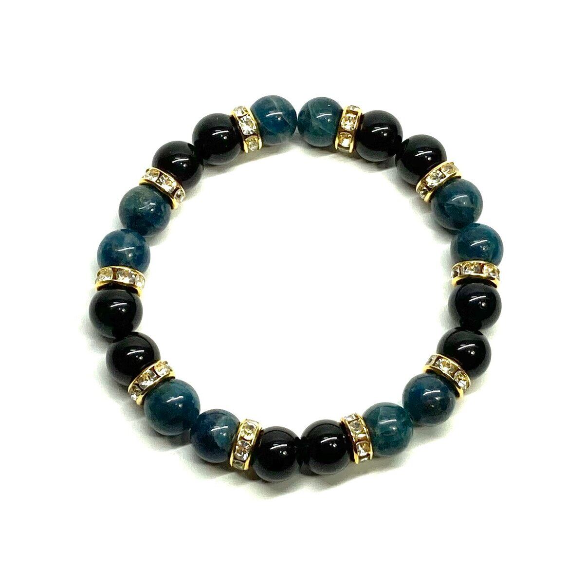 モリオン&アパタイト パワーストーン ブレスレット 天然石 (ゴールド) 8mm レディース 女性 数珠ブレス 開運 プレゼント ギフト