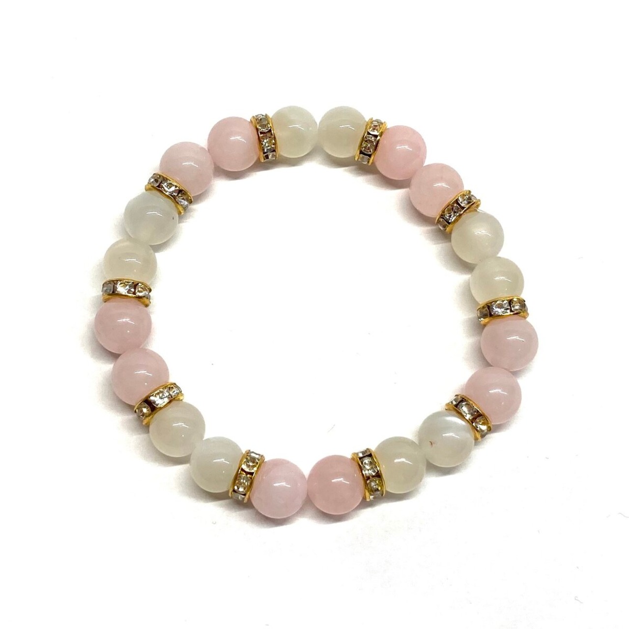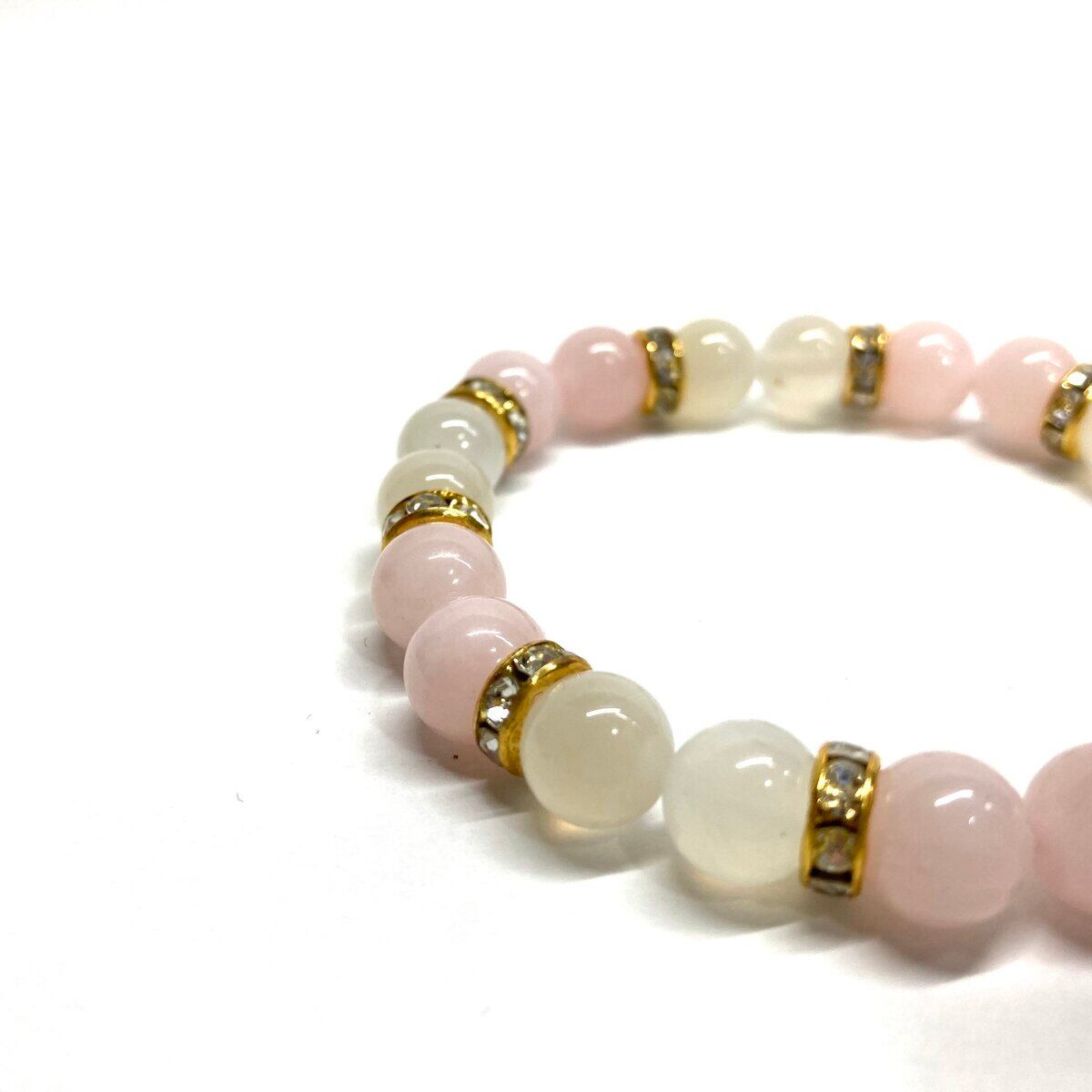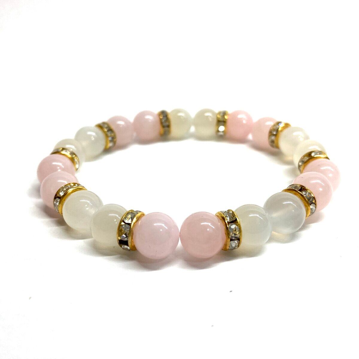 ムーンストーン&ローズクォーツ パワーストーン ブレスレット 天然石 (ゴールド) 8mm レディース 女性 数珠ブレス 開運 プレゼント ギフト