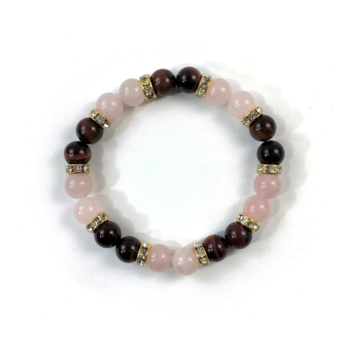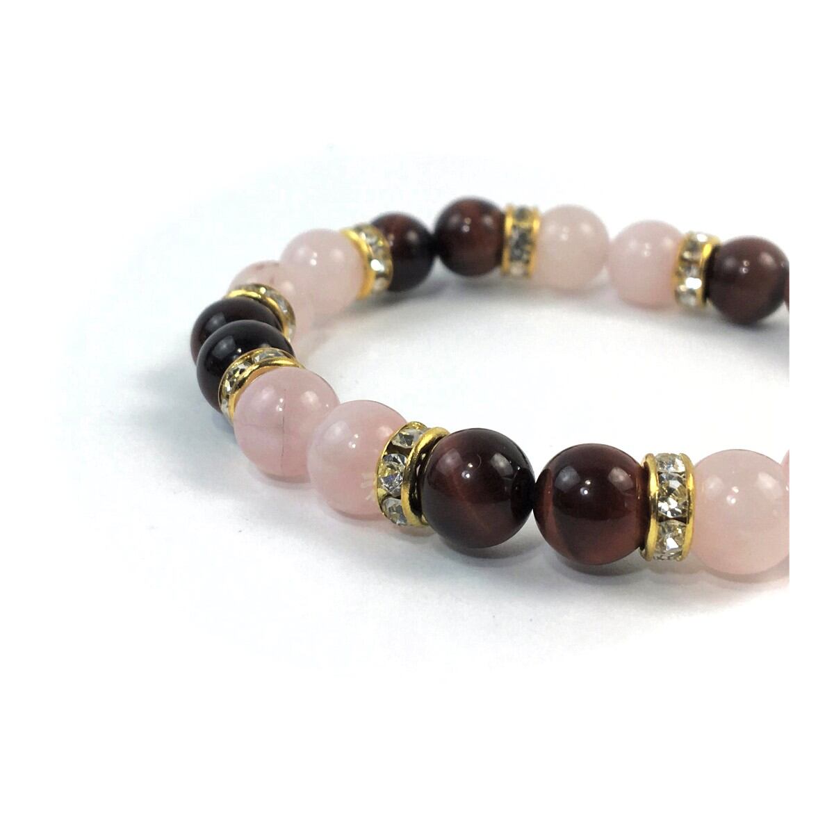 ローズクォーツ&レッドタイガーアイ パワーストーン ブレスレット 天然石 8mm(ゴールド)レディース 女性 数珠ブレス 開運 プレゼント ギフト