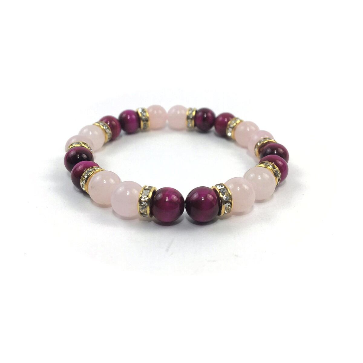 ローズクォーツ&ピンクタイガーアイ パワーストーン ブレスレット 天然石 8mm(ゴールド)レディース 女性 数珠ブレス 開運 プレゼント ギフト