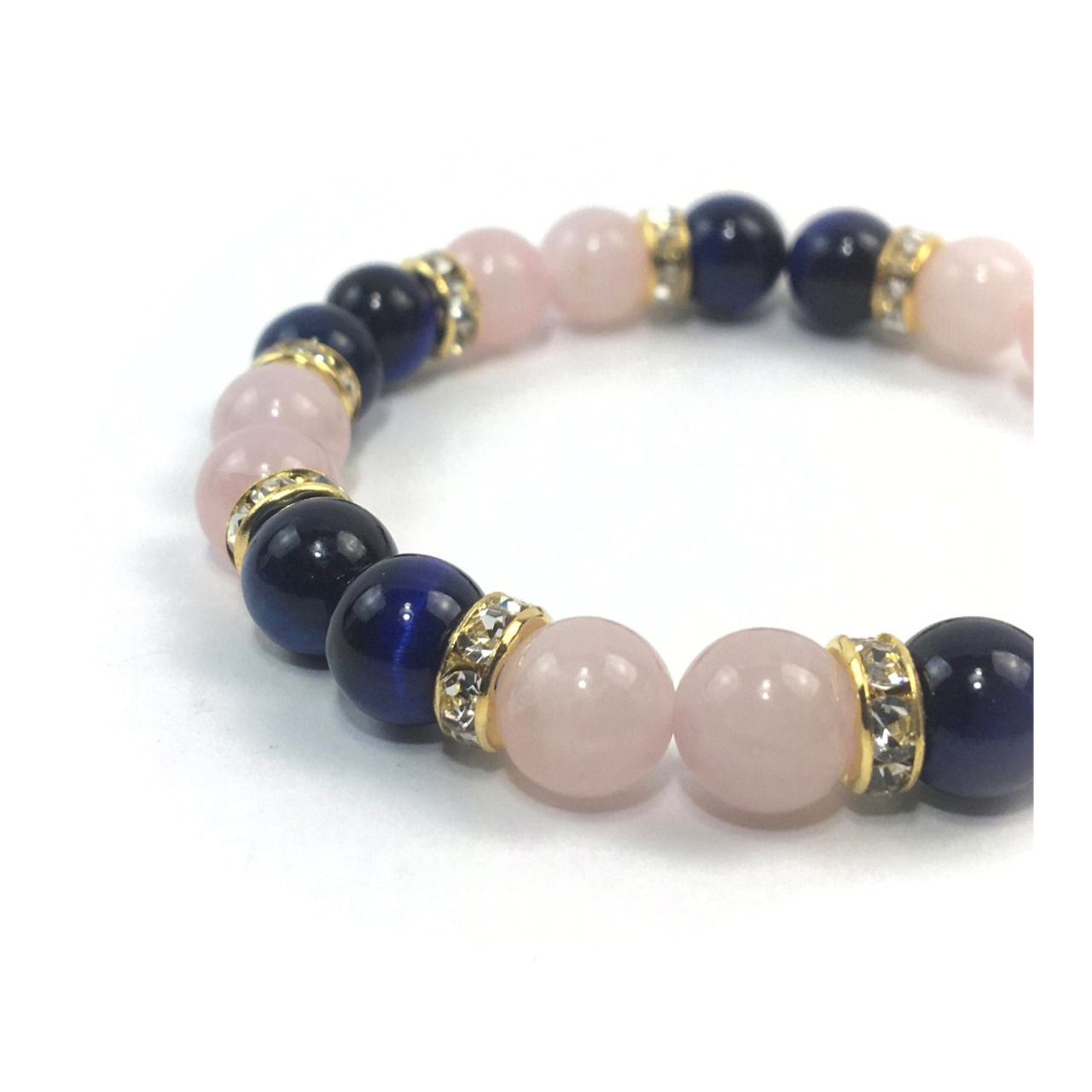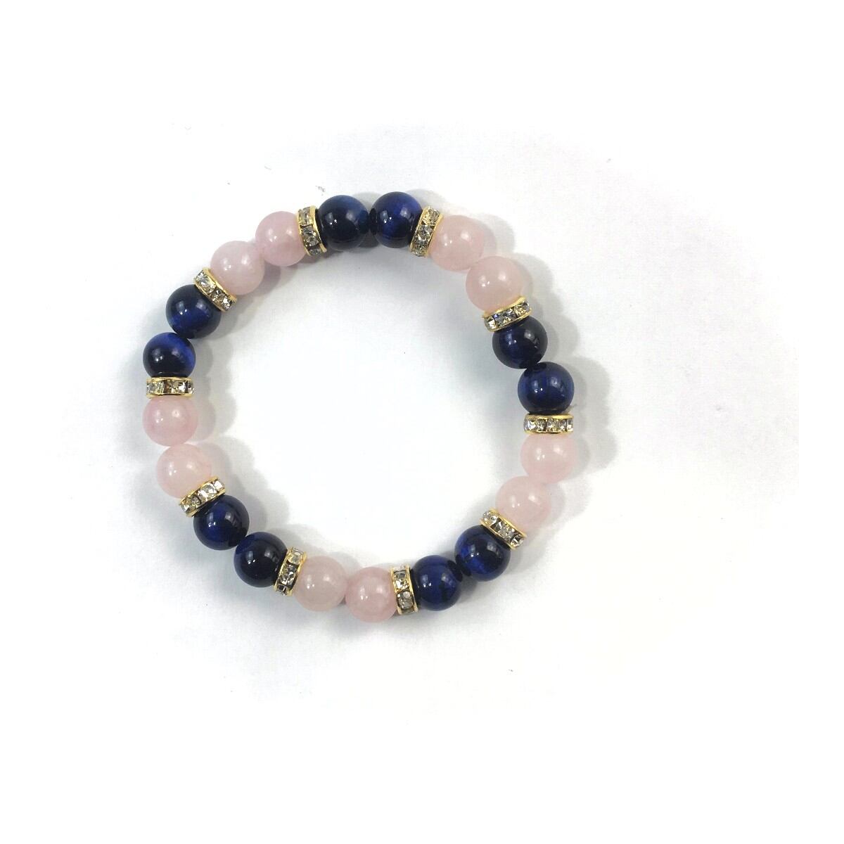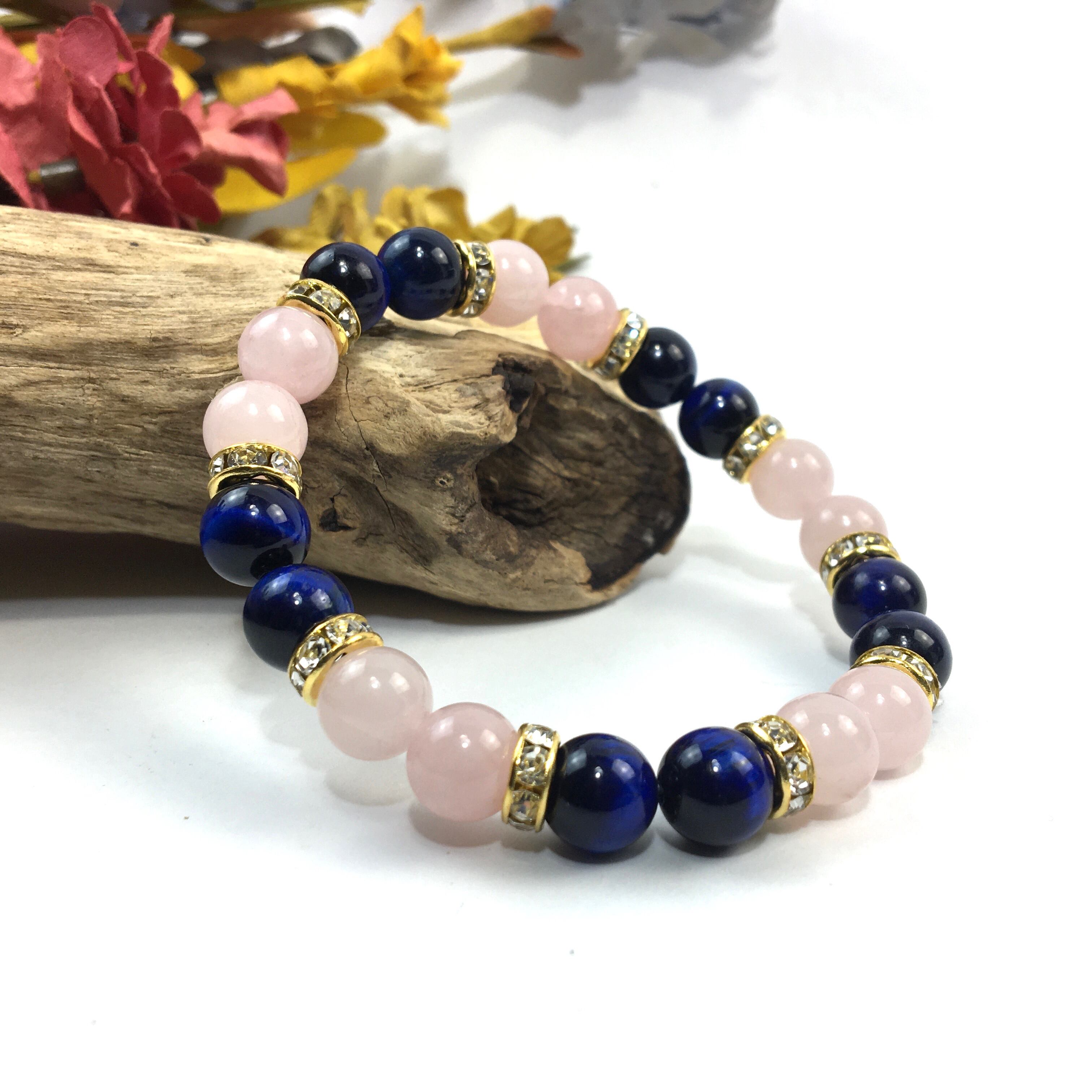 ローズクォーツ&ブルータイガーアイ パワーストーン ブレスレット 天然石 8mm(ゴールド)レディース 女性 数珠ブレス 開運 プレゼント ギフト