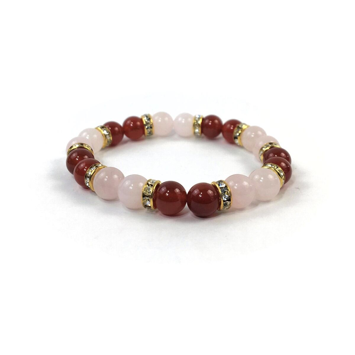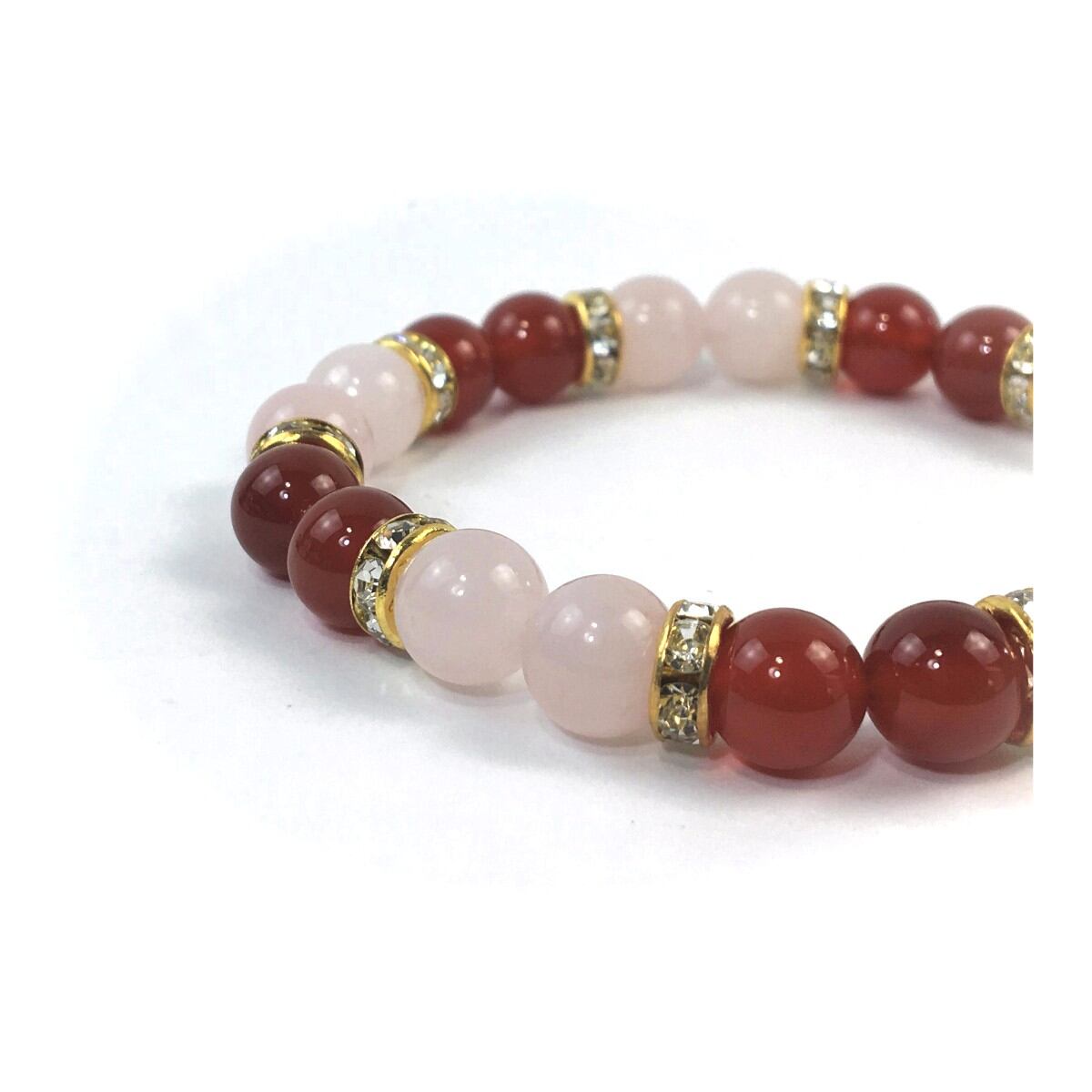 ローズクォーツ&赤メノウ パワーストーン ブレスレット 天然石 8mm(ゴールド)レディース 女性 数珠ブレス 開運 プレゼント ギフト