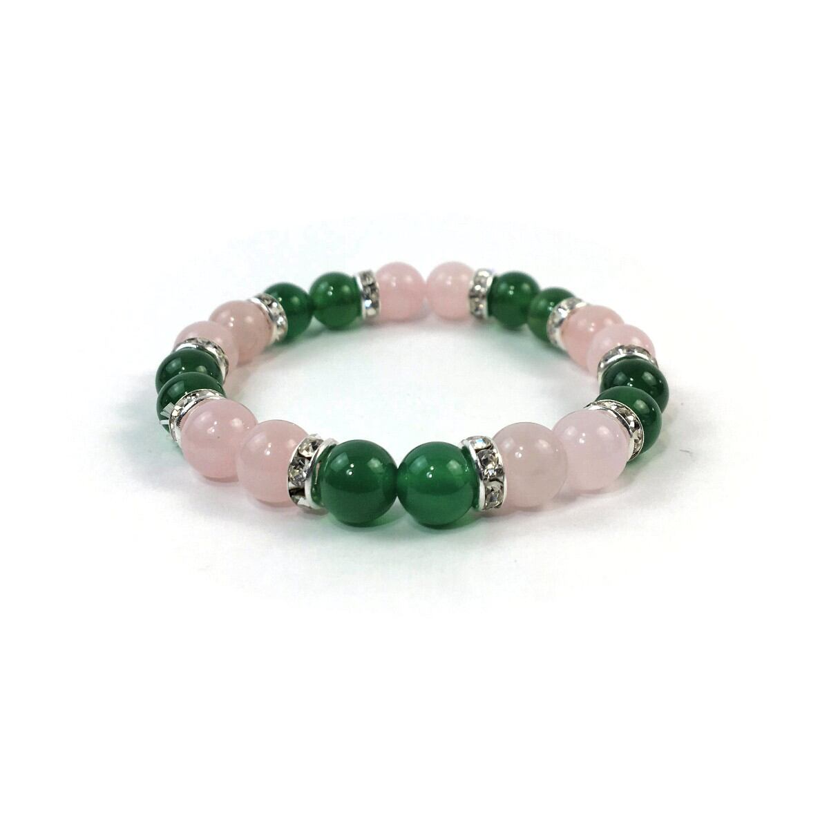 ローズクォーツ&緑瑪瑙 パワーストーン ブレスレット 天然石 8mm(シルバー)レディース 女性 数珠ブレス 開運 プレゼント ギフト
