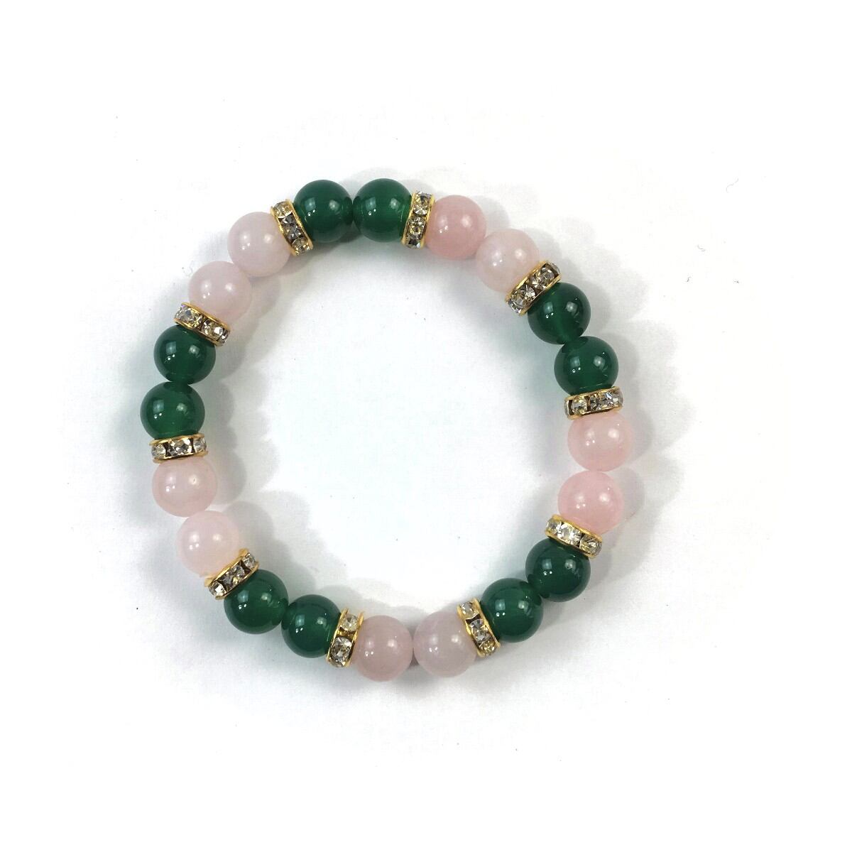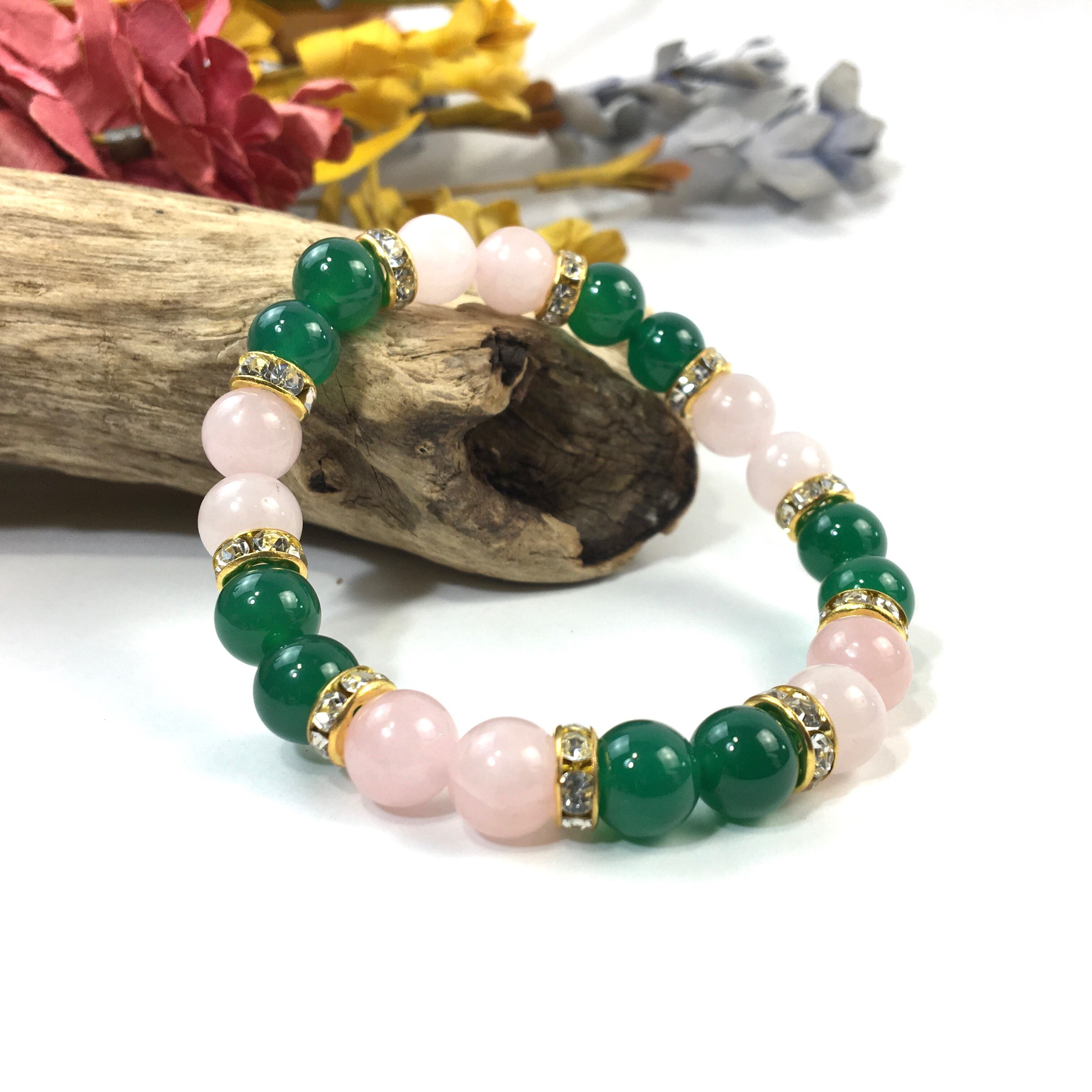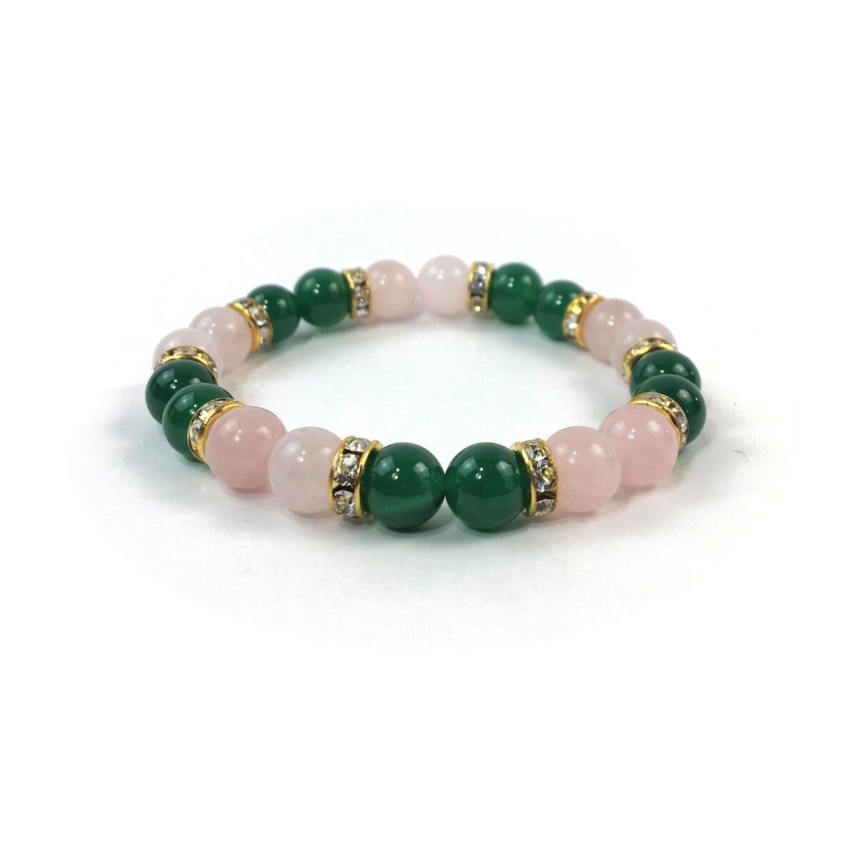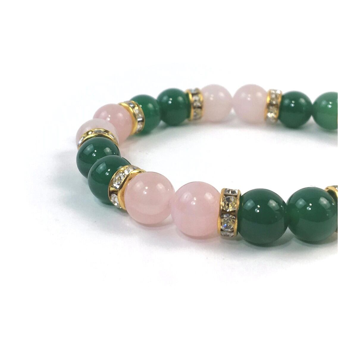 ローズクォーツ&緑瑪瑙 パワーストーン ブレスレット 天然石 8mm(ゴールド)レディース 女性 数珠ブレス 開運 プレゼント ギフト