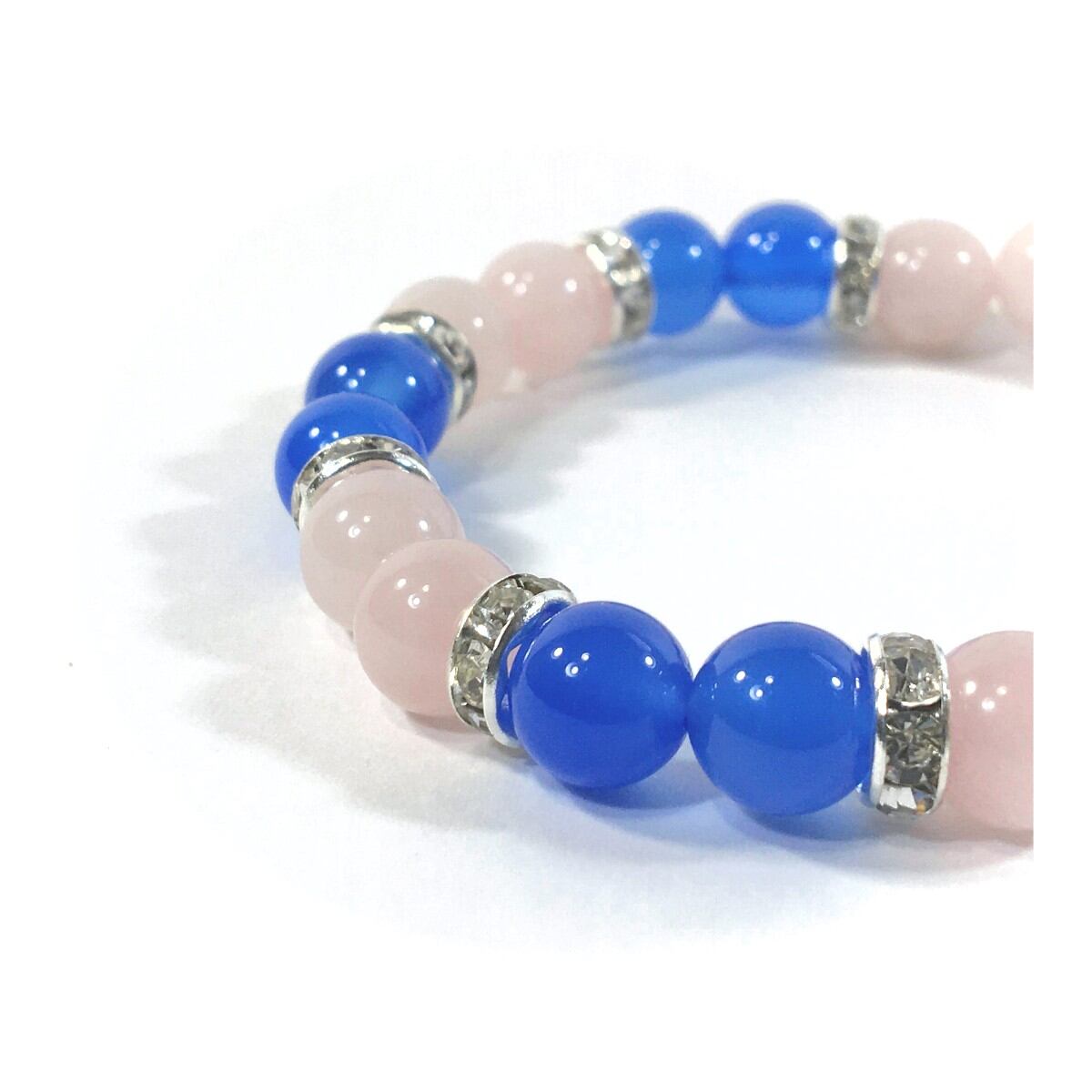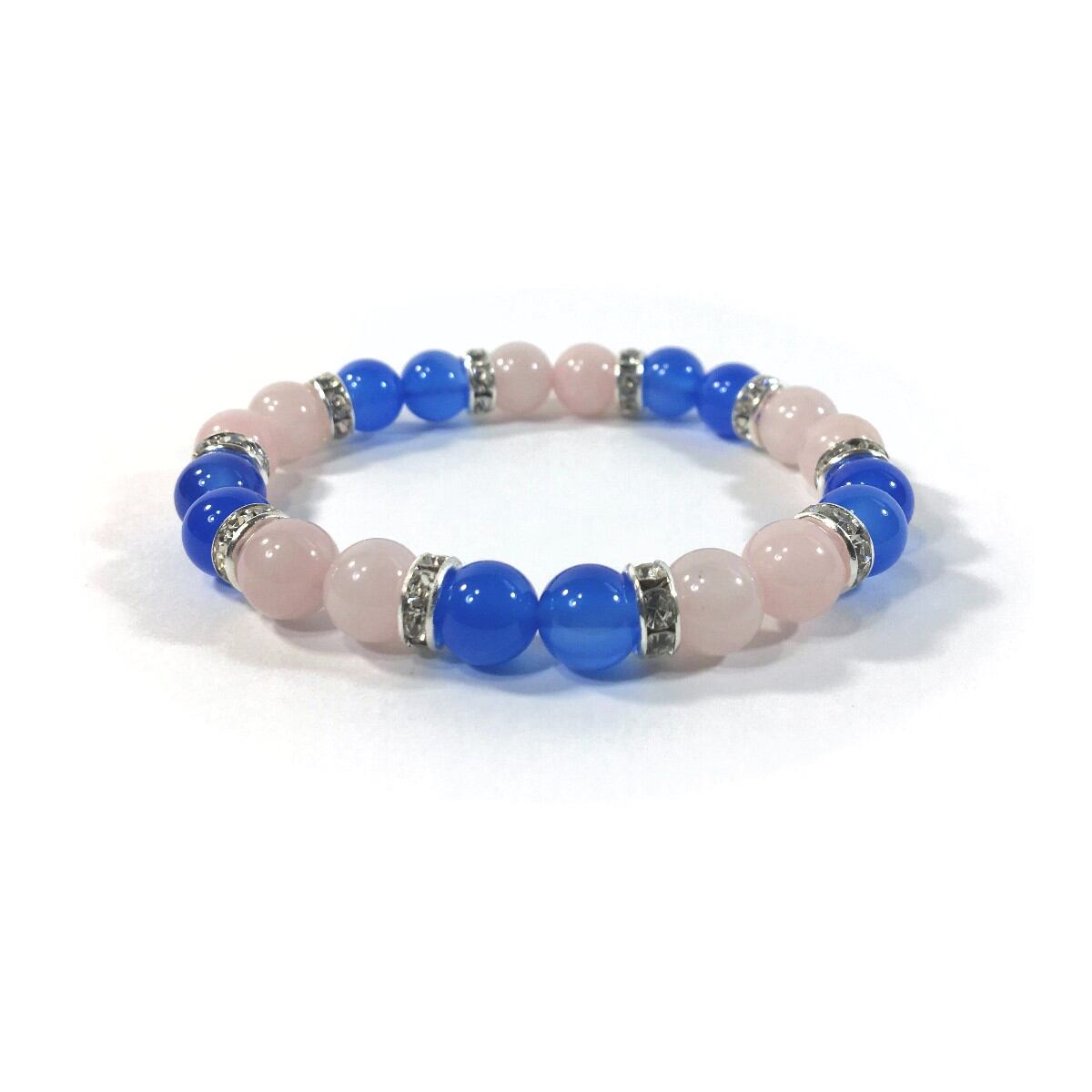 ローズクォーツ&ブルーメノウ パワーストーン ブレスレット 天然石 8mm(シルバー)レディース 女性 数珠ブレス 開運 プレゼント ギフト