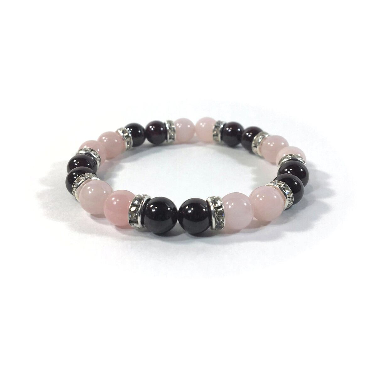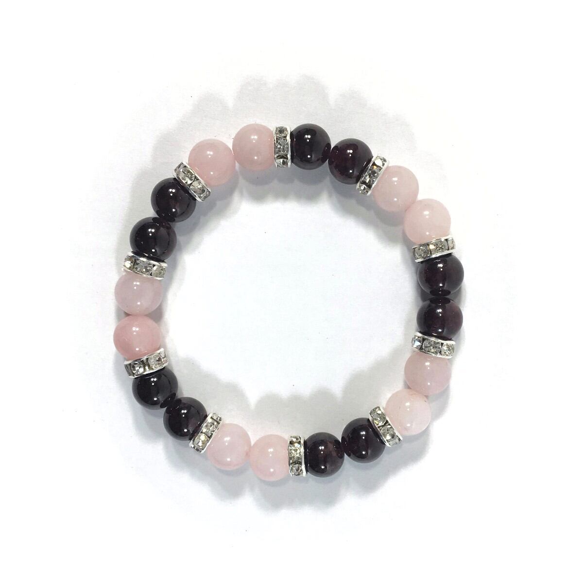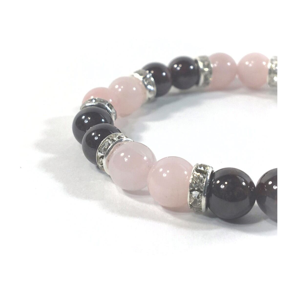 ローズクォーツ&ガーネット パワーストーン ブレスレット 天然石 8mm(シルバー)レディース 女性 数珠ブレス 開運 プレゼント ギフト