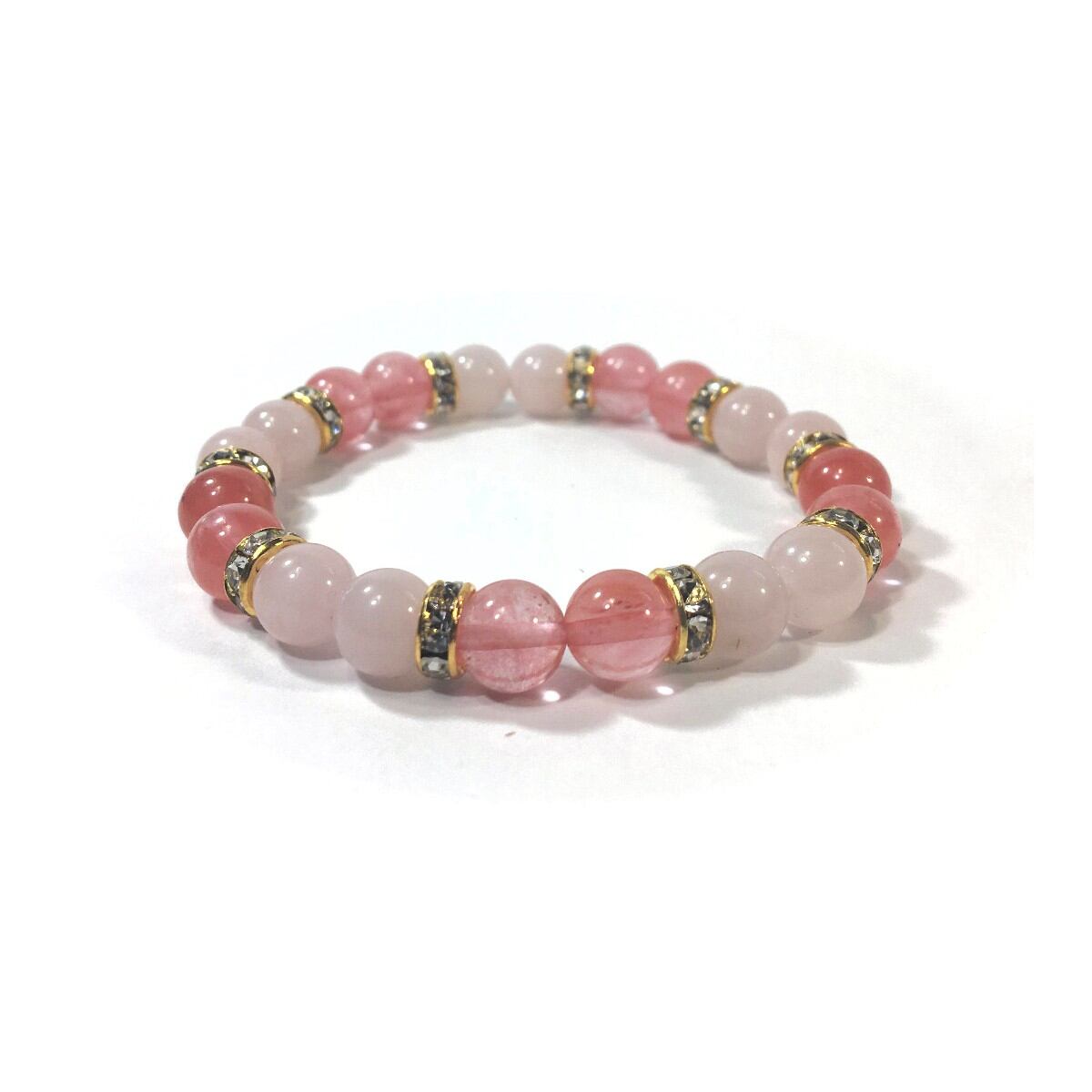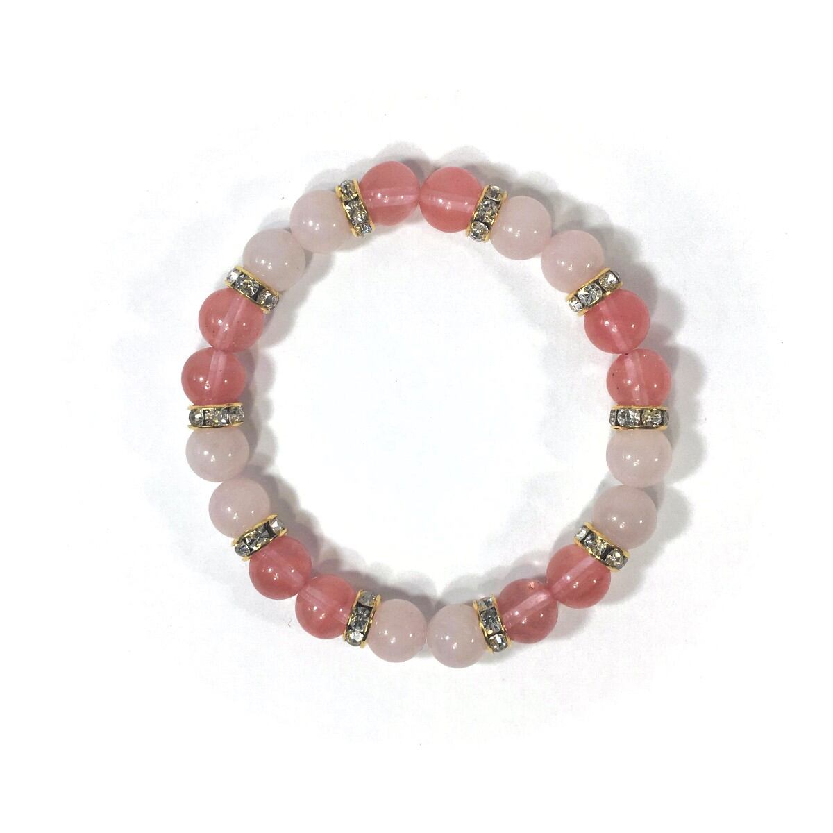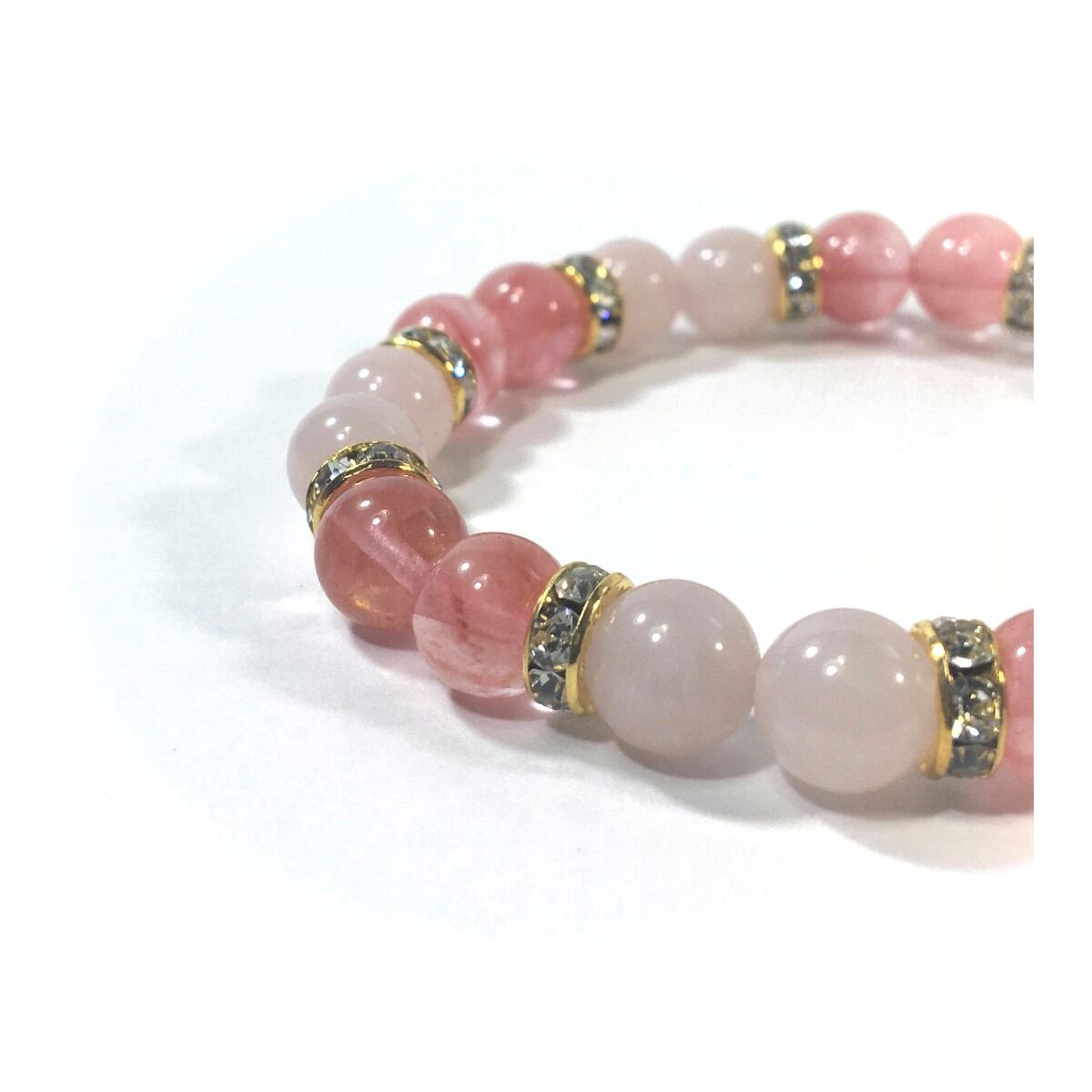 ローズクォーツ&チェリークォーツ パワーストーン ブレスレット 8mm(ゴールド)レディース 女性 数珠ブレス 開運 プレゼント ギフト