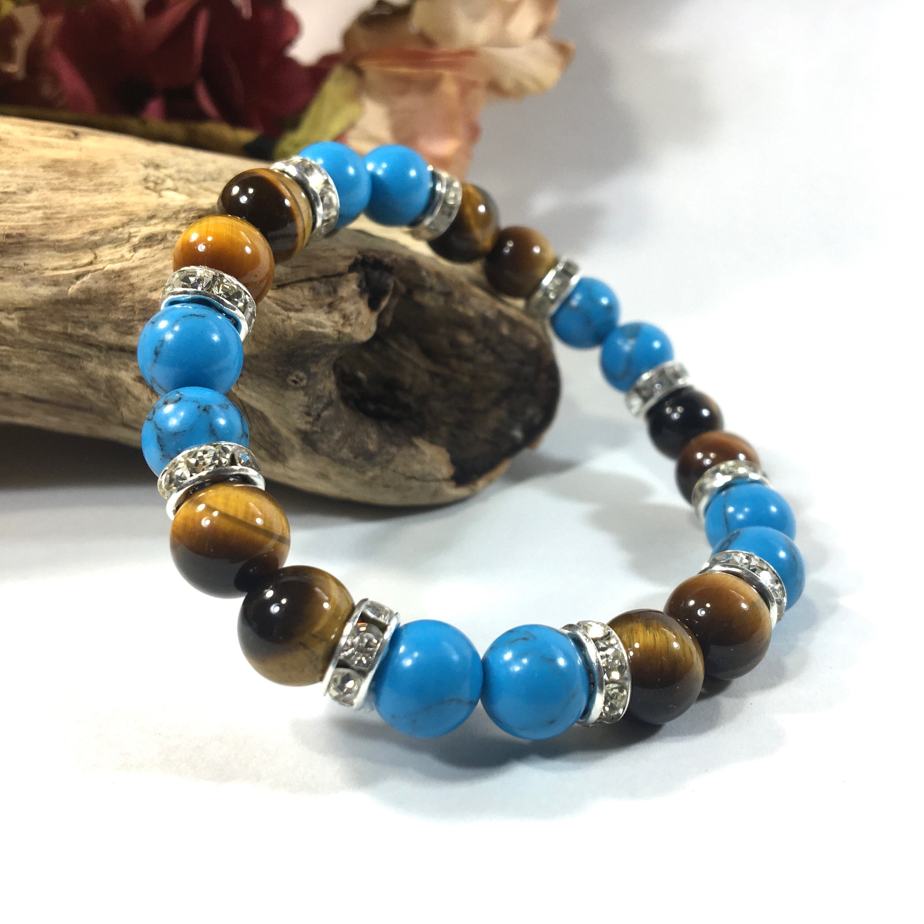 ターコイズ&タイガーアイ パワーストーン ブレスレット 8mm(シルバー)レディース 女性 数珠ブレス 開運 プレゼント ギフト