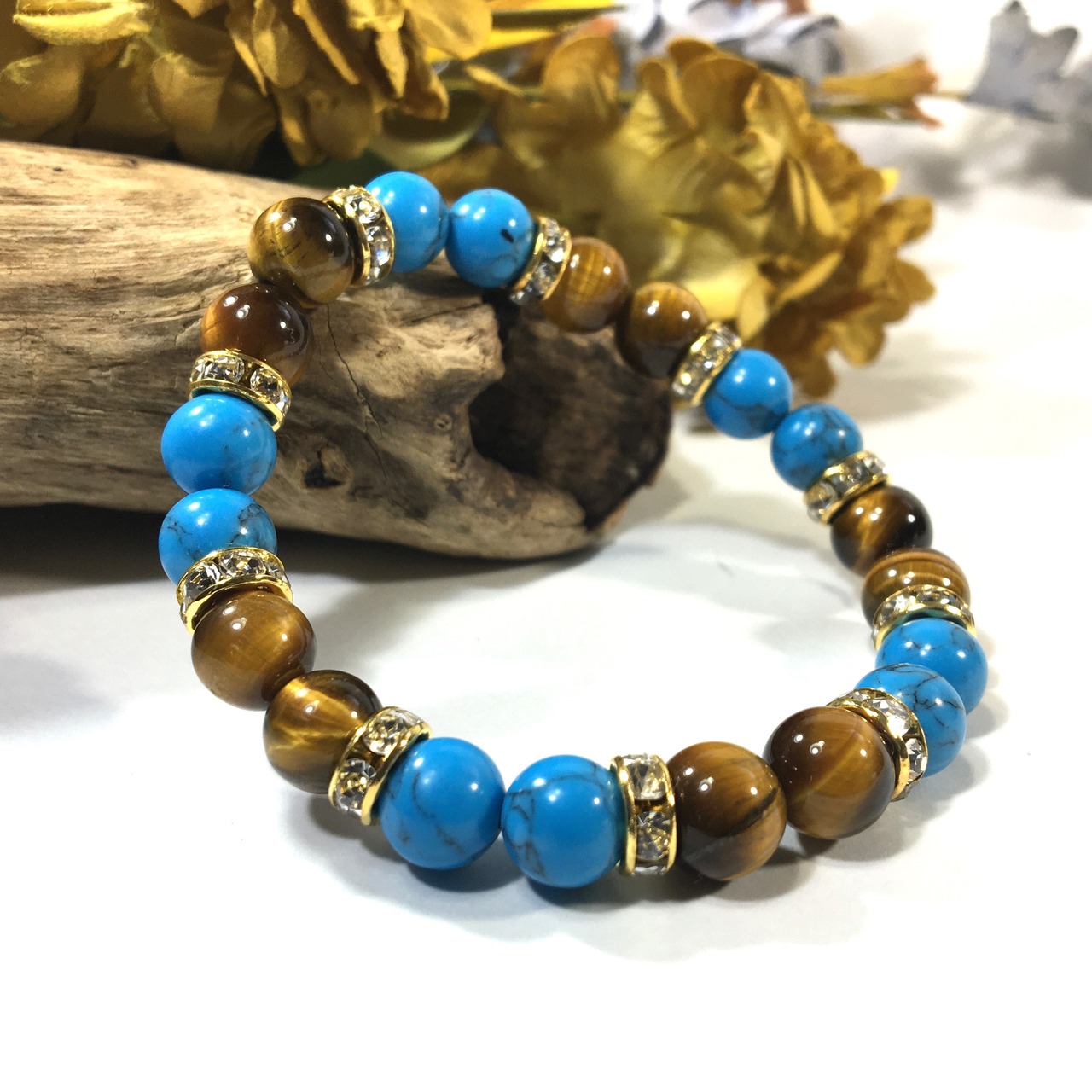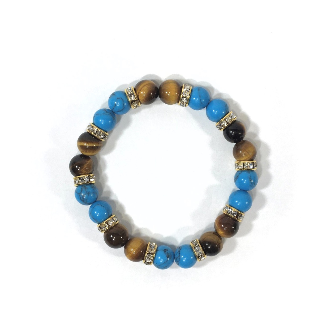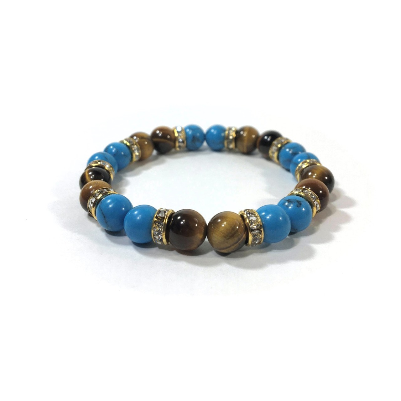 ターコイズ&タイガーアイ パワーストーン ブレスレット 8mm(ゴールド)レディース 女性 数珠ブレス 開運 プレゼント ギフト