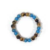こちらは、8mm玉のターコイズとタイガーアイを使ったパワーストーンブレスレットです。シンプルなデザインでどんなコーディネートにも合わせやすいデザインに仕上げています。サイズは内周約15cmです。気になる方は是非この機会にどうぞ。