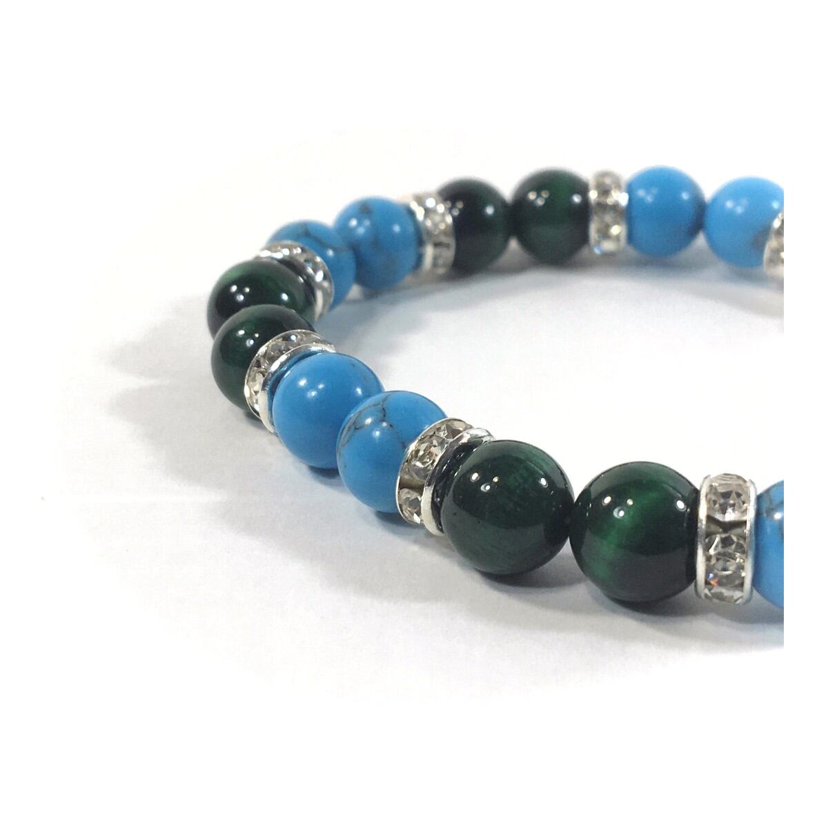 ターコイズ&グリーンタイガーアイ パワーストーン ブレスレット 8mm(シルバー)レディース 女性 数珠ブレス 開運 プレゼント ギフト
