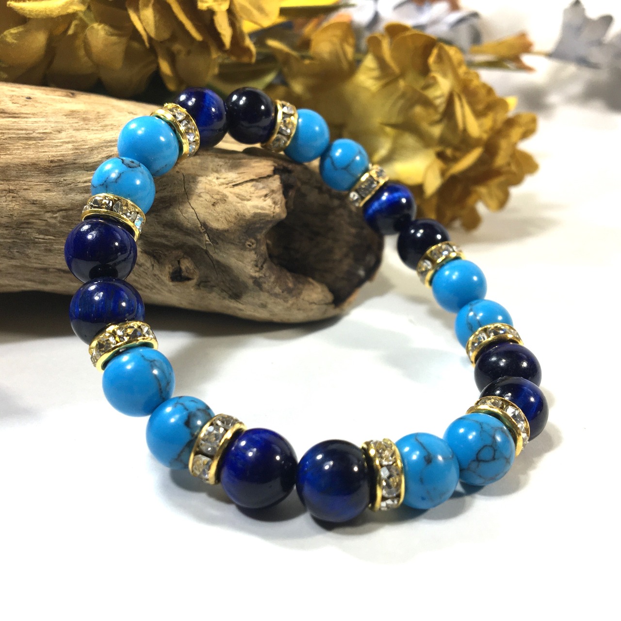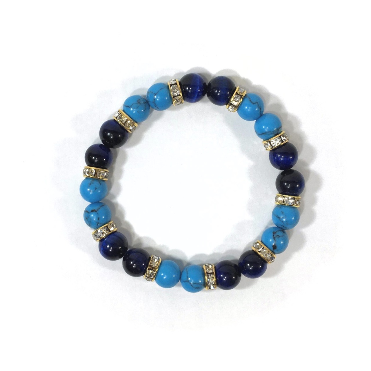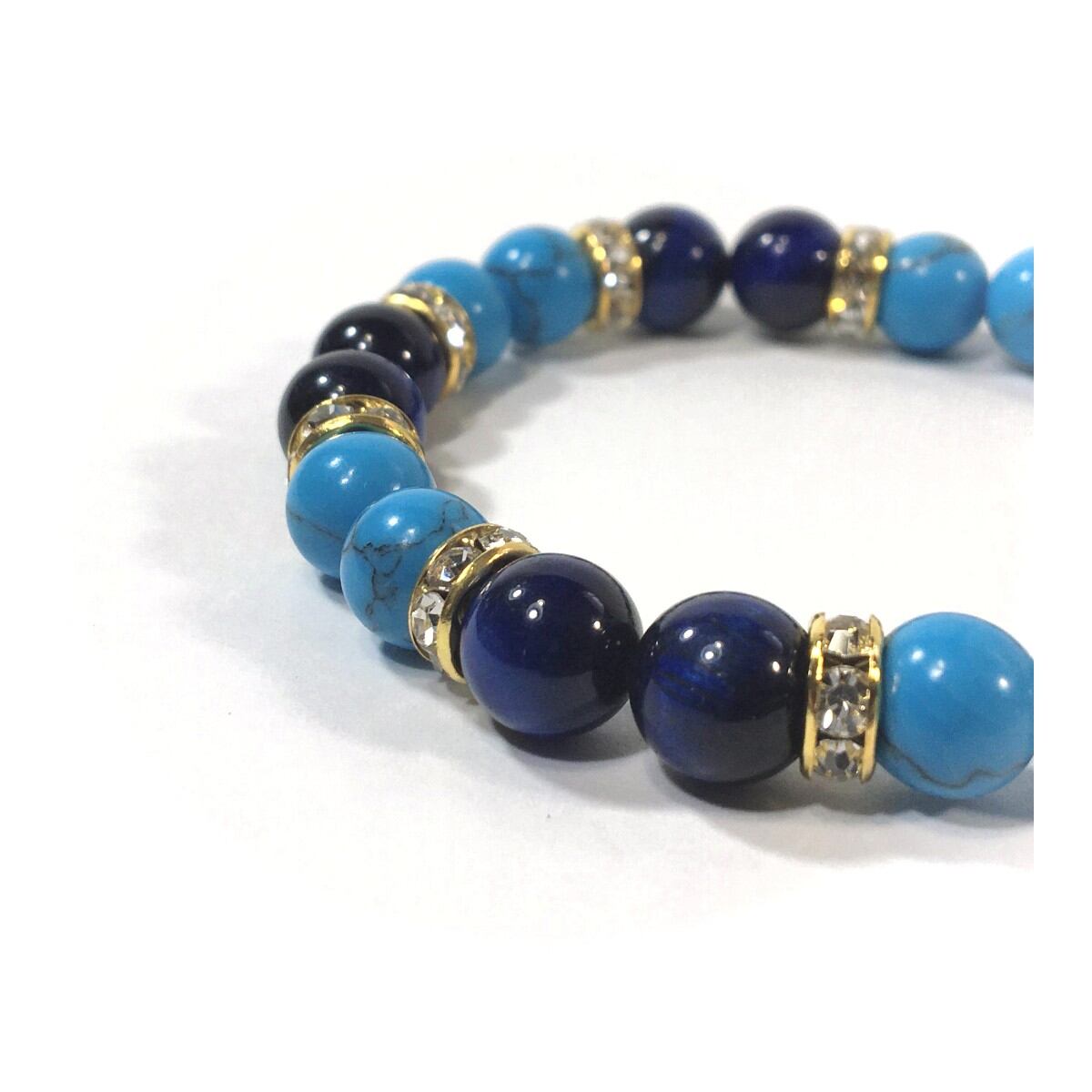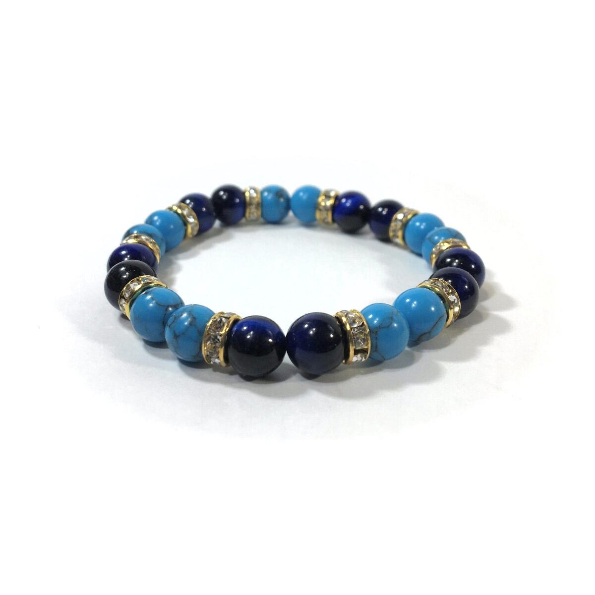 ターコイズ&ブルータイガーアイ パワーストーン ブレスレット 8mm(ゴールド)レディース 女性 数珠ブレス 開運 プレゼント ギフト