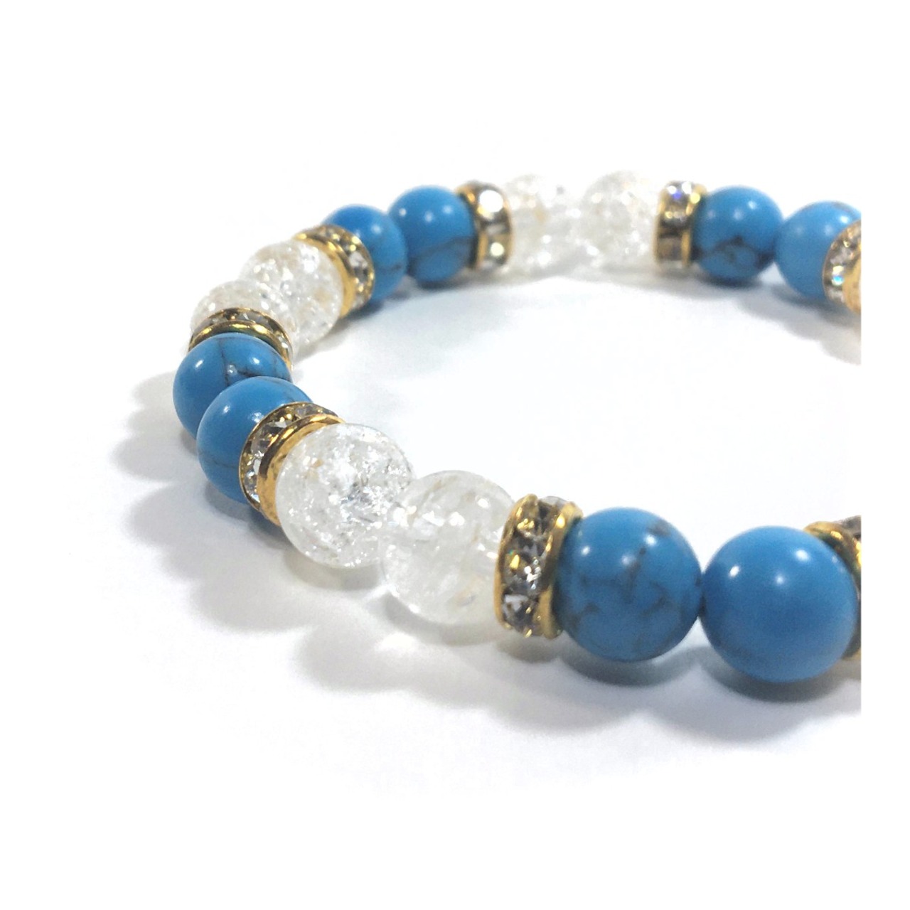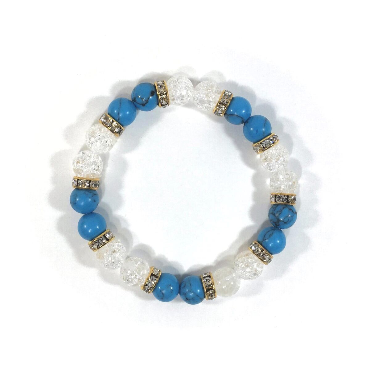 ターコイズ&クラック水晶 パワーストーン ブレスレット 天然石ブレス 8mm(ゴールド)レディース 女性 数珠ブレス 開運 プレゼント ギフト