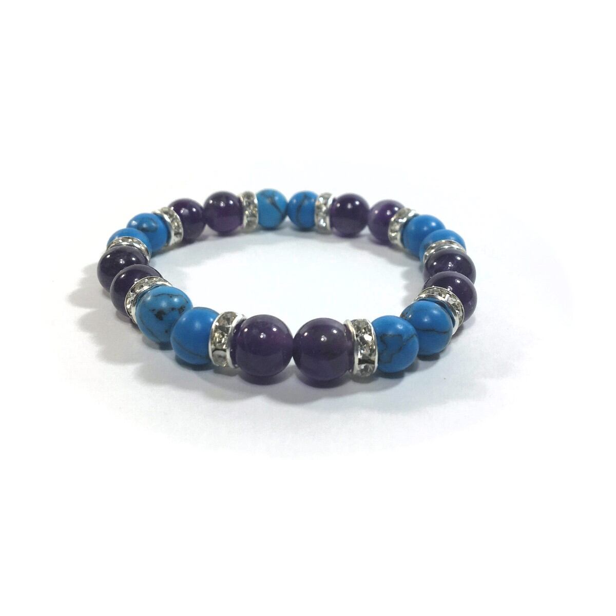 ターコイズ&アメジスト パワーストーン ブレスレット 天然石ブレス 8mm(シルバー)レディース 女性 数珠ブレス 開運 プレゼント ギフト