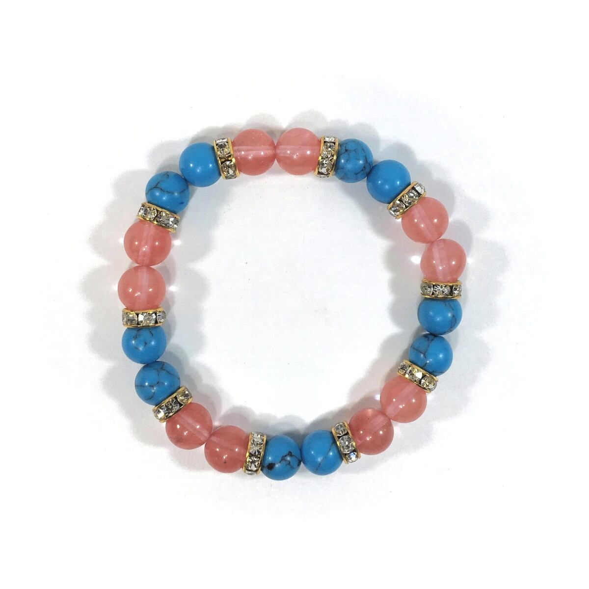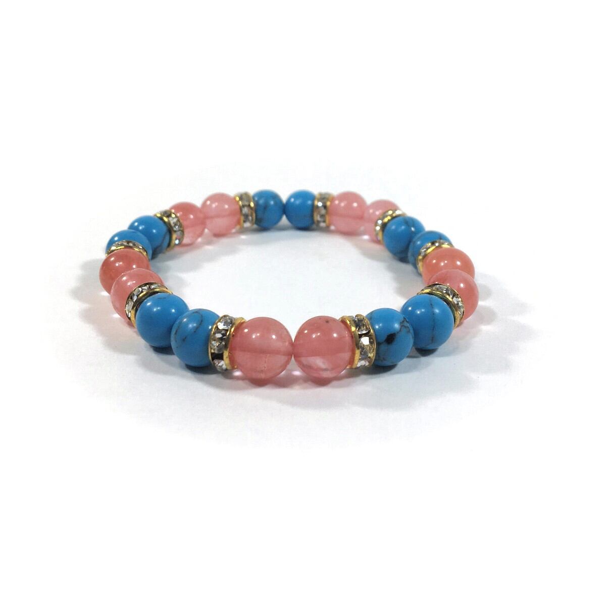 ターコイズ&チェリークォーツ パワーストーン ブレスレット 8mm(ゴールド)レディース 女性 数珠ブレス 開運 プレゼント ギフト