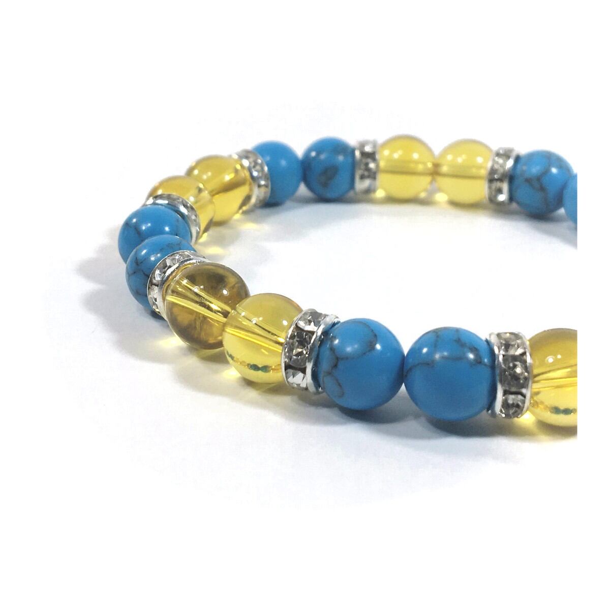 ターコイズ&シトリン パワーストーン ブレスレット 8mm(シルバー)レディース 女性 数珠ブレス 開運 プレゼント ギフト