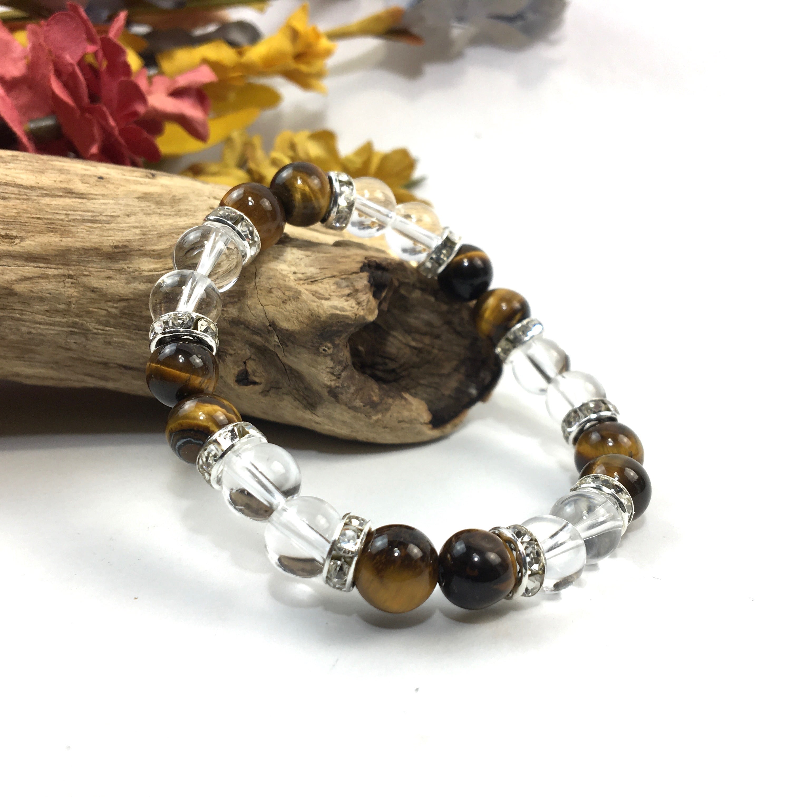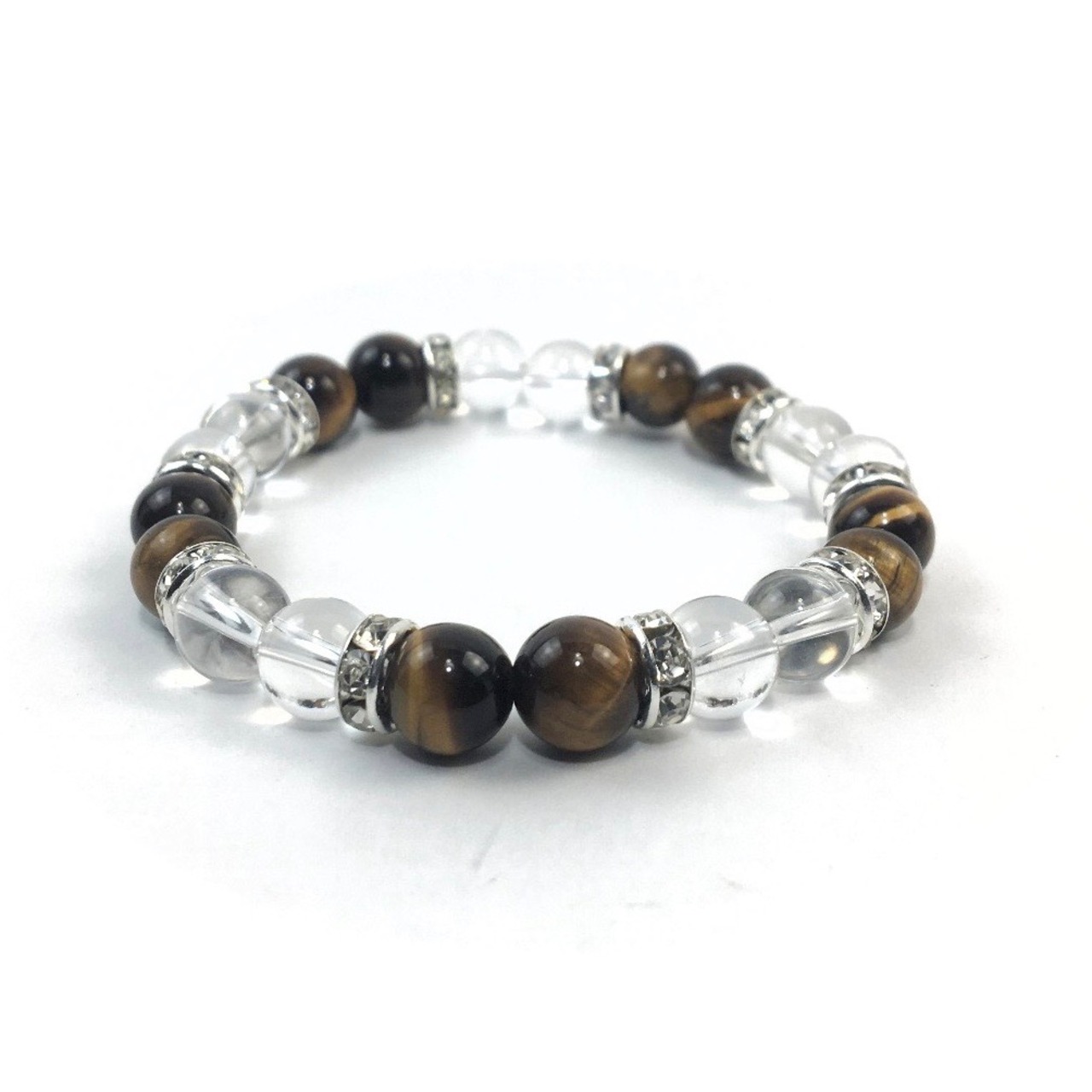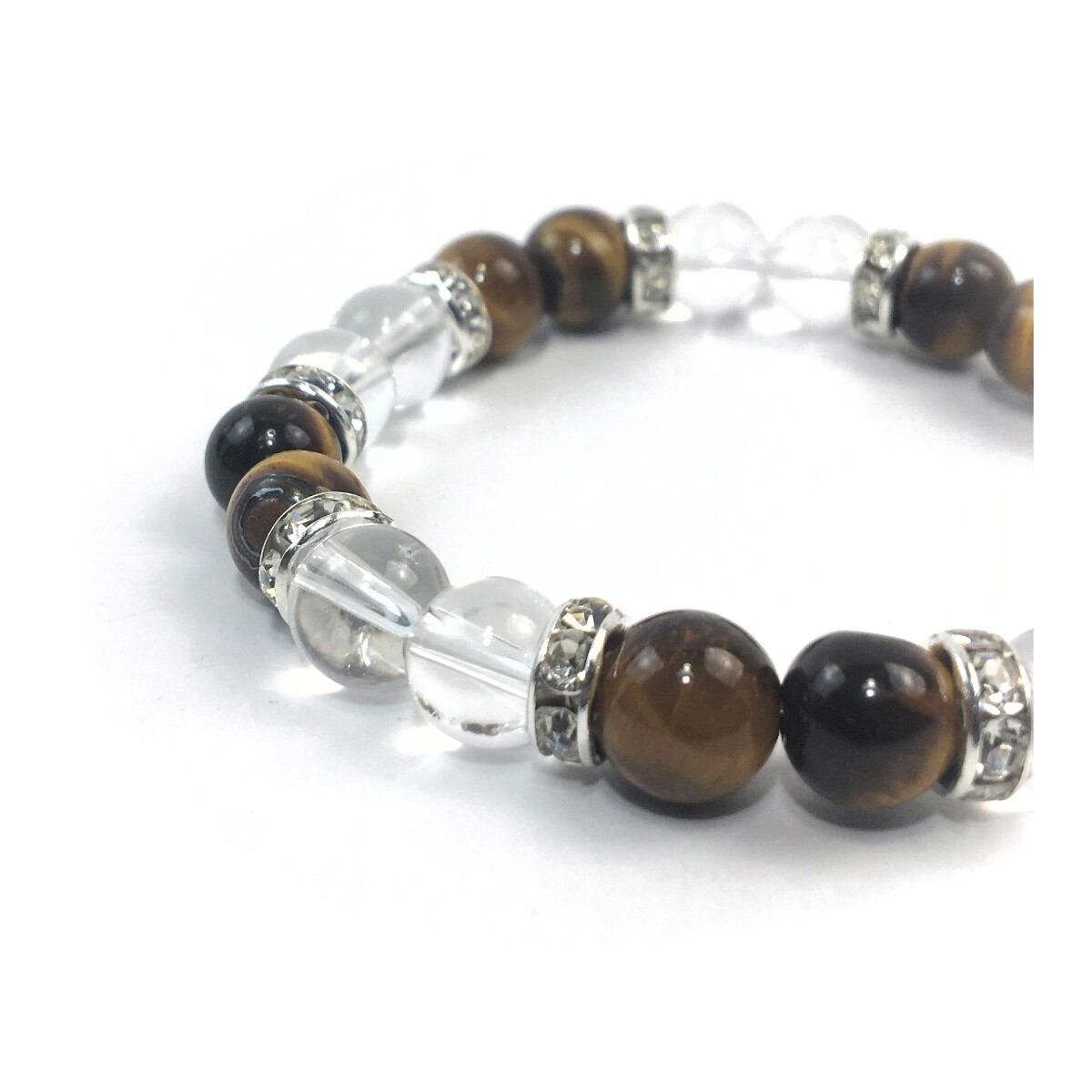 水晶&タイガーアイ パワーストーン ブレスレット 天然石 8mm(シルバー)レディース 女性 数珠ブレス 開運 プレゼント ギフト