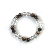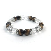 こちらは、8mm玉の水晶とタイガーアイを使ったパワーストーンブレスレットです。シンプルなデザインでどんなコーディネートにも合わせやすいデザインに仕上げています。サイズは内周約15cmです。気になる方は是非この機会にどうぞ。