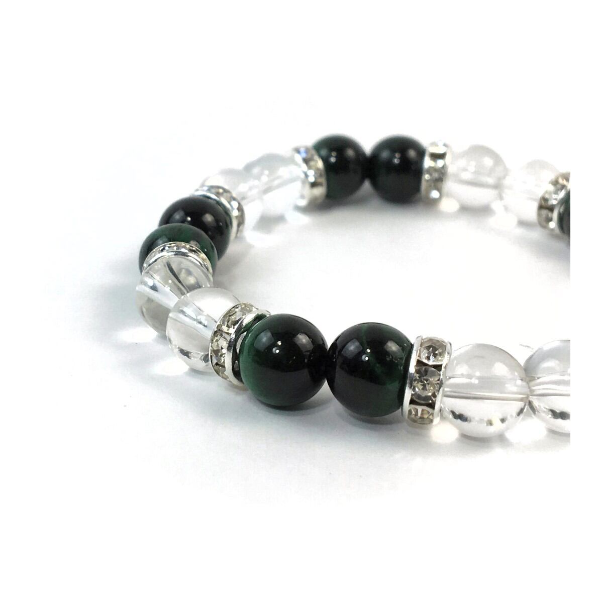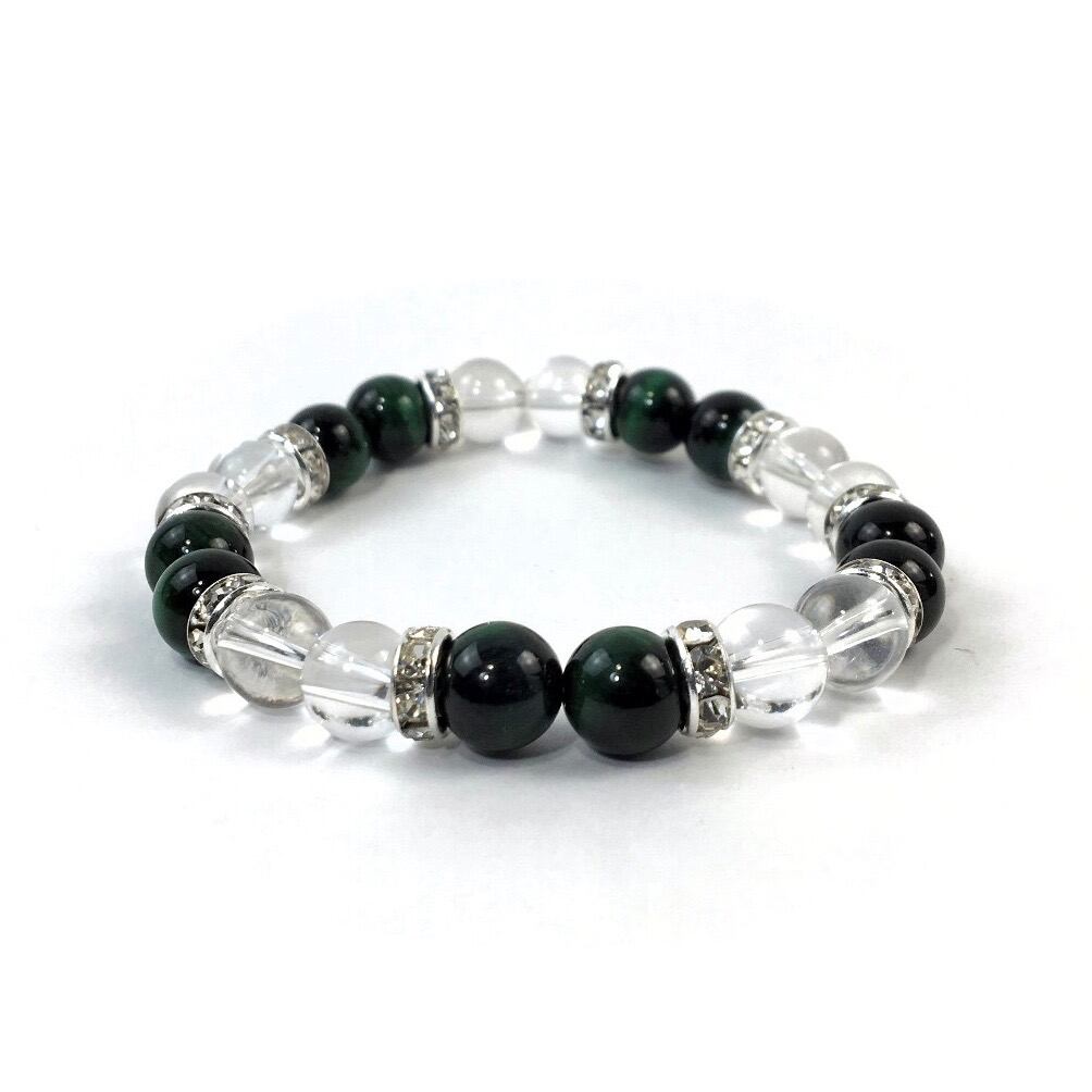 水晶&グリーンタイガーアイ パワーストーン ブレスレット 天然石 8mm(シルバー)レディース 女性 数珠ブレス 開運 プレゼント ギフト