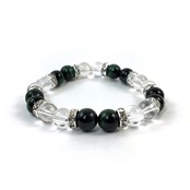 こちらは、8mm玉の水晶とグリーンタイガーアイを使ったパワーストーンブレスレットです。シンプルなデザインでどんなコーディネートにも合わせやすいデザインに仕上げています。サイズは内周約15cmです。気になる方は是非この機会にどうぞ。