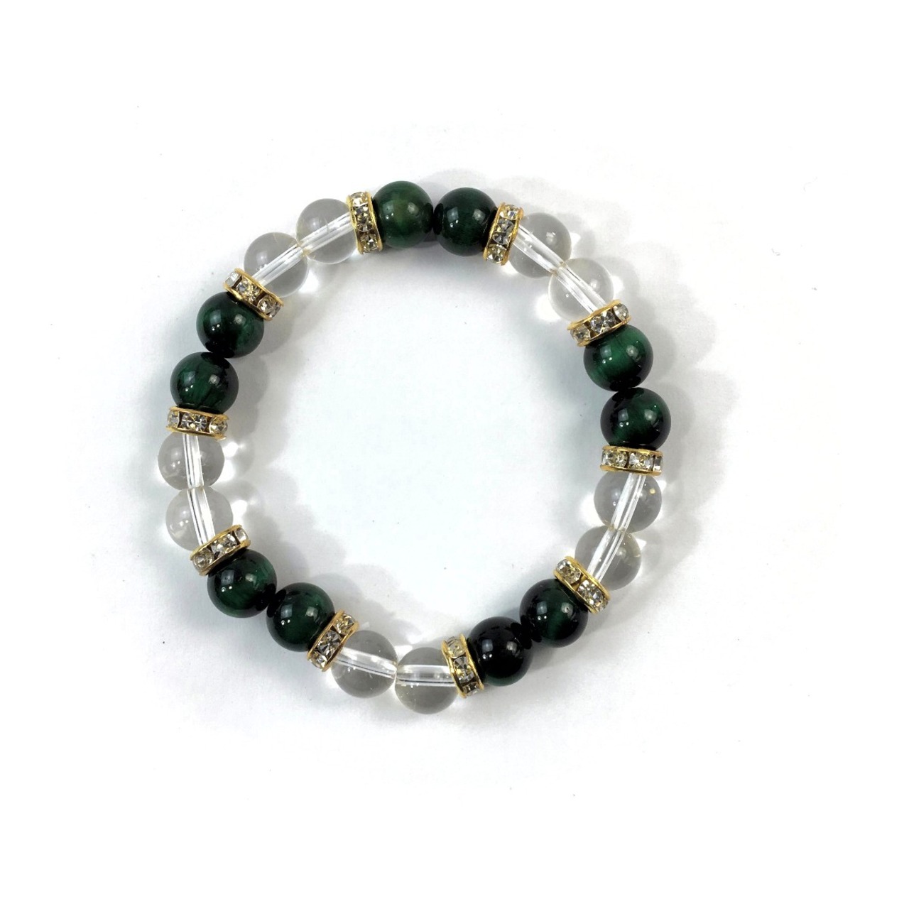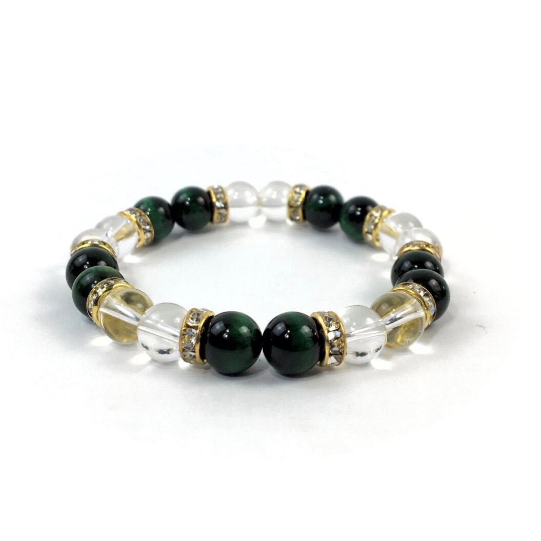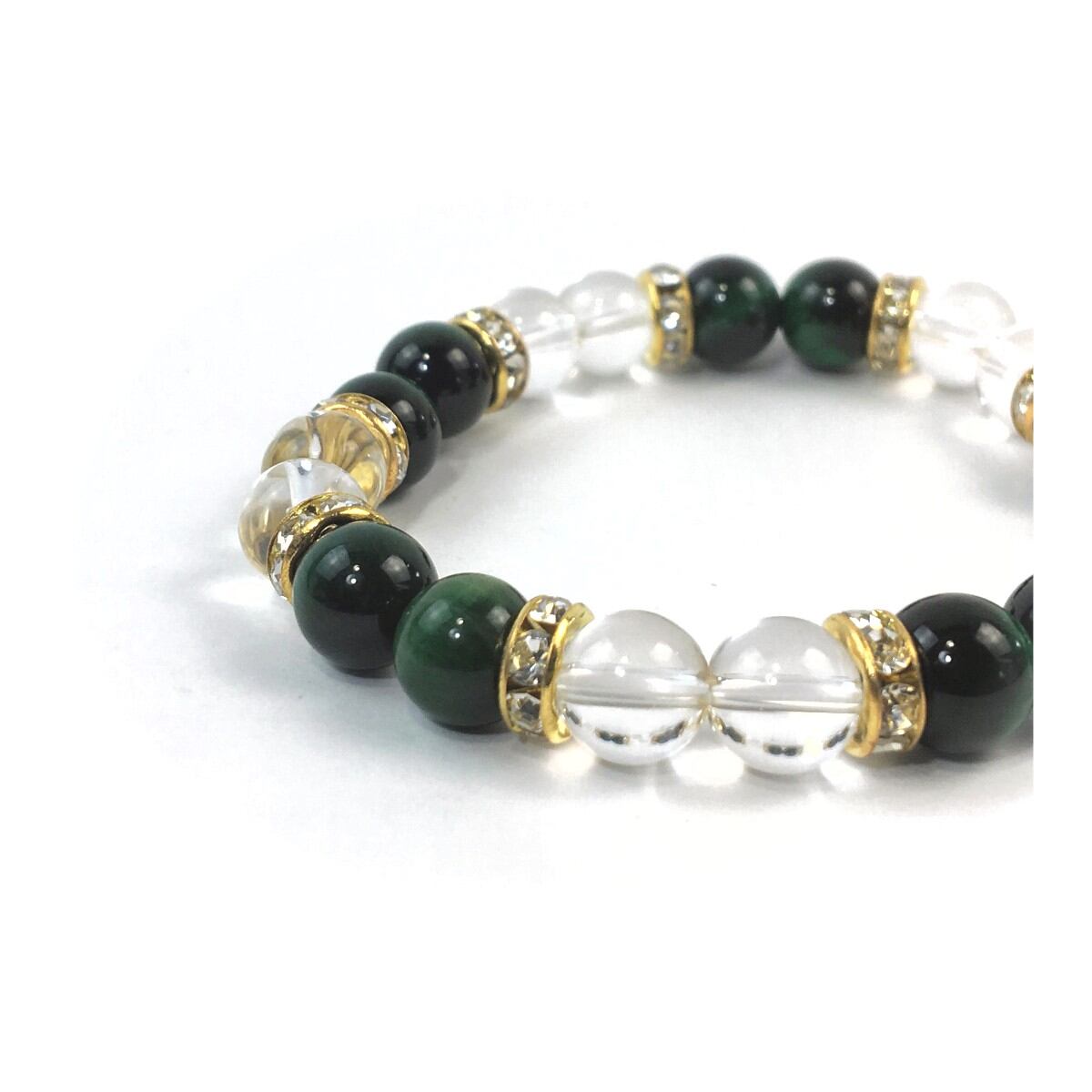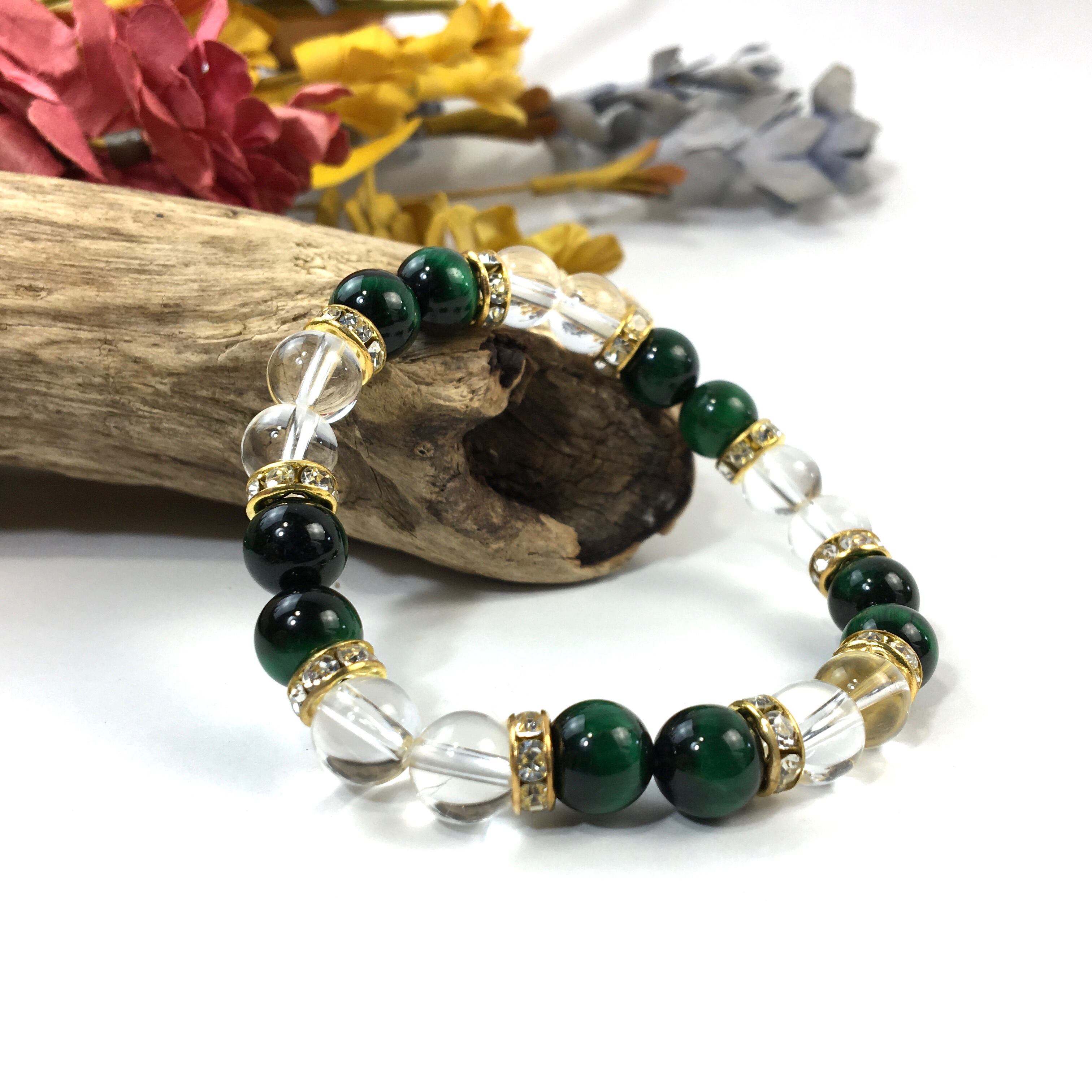 水晶&グリーンタイガーアイ パワーストーン ブレスレット 天然石 8mm(ゴールド)レディース 女性 数珠ブレス 開運 プレゼント ギフト