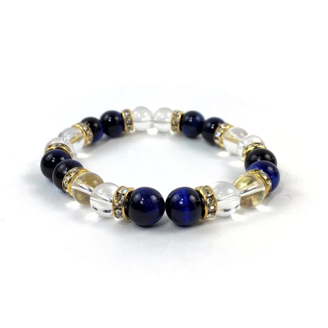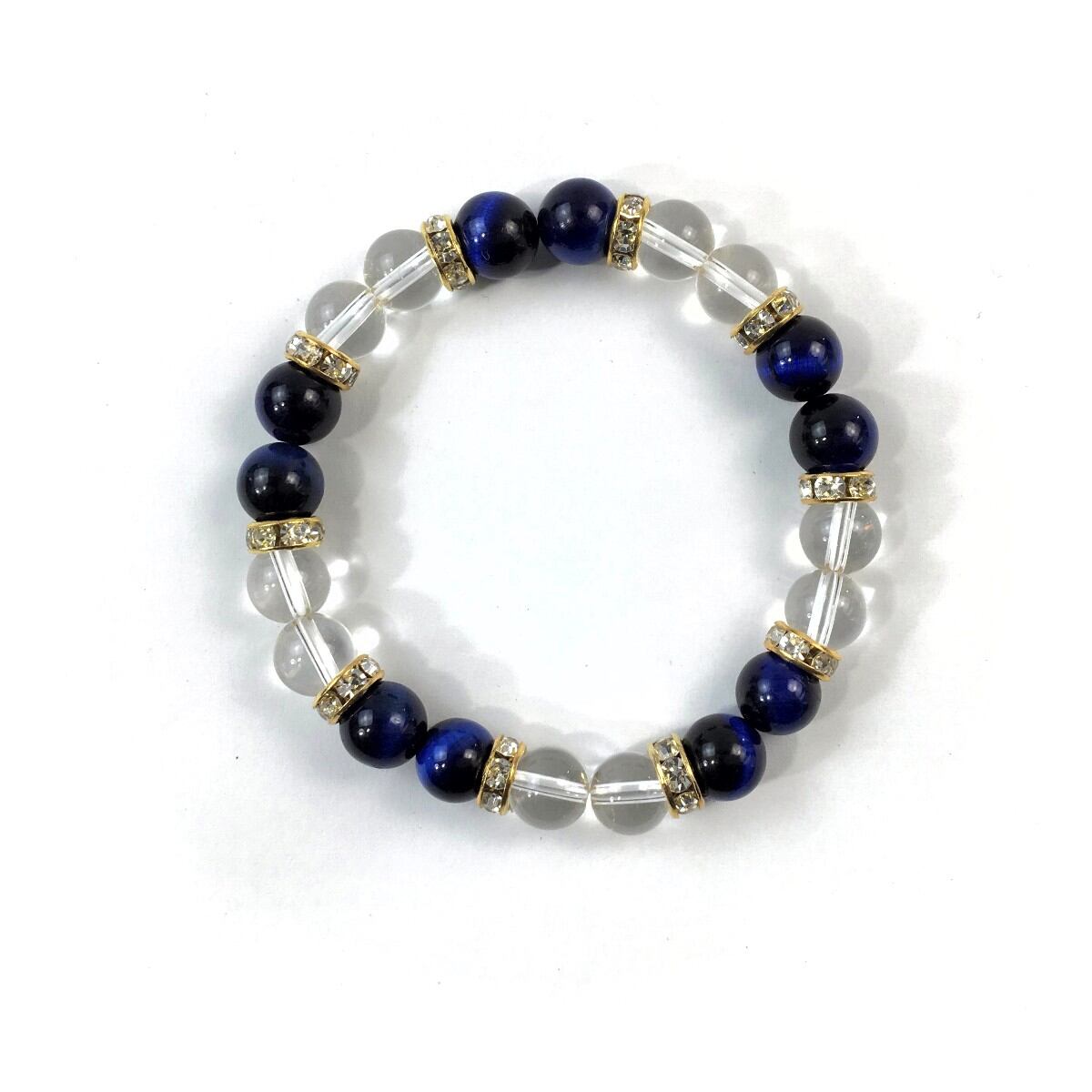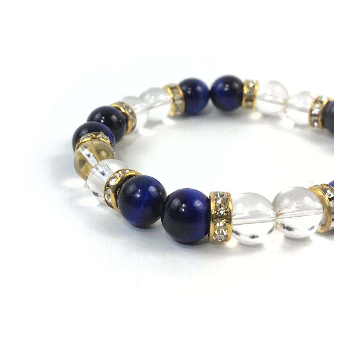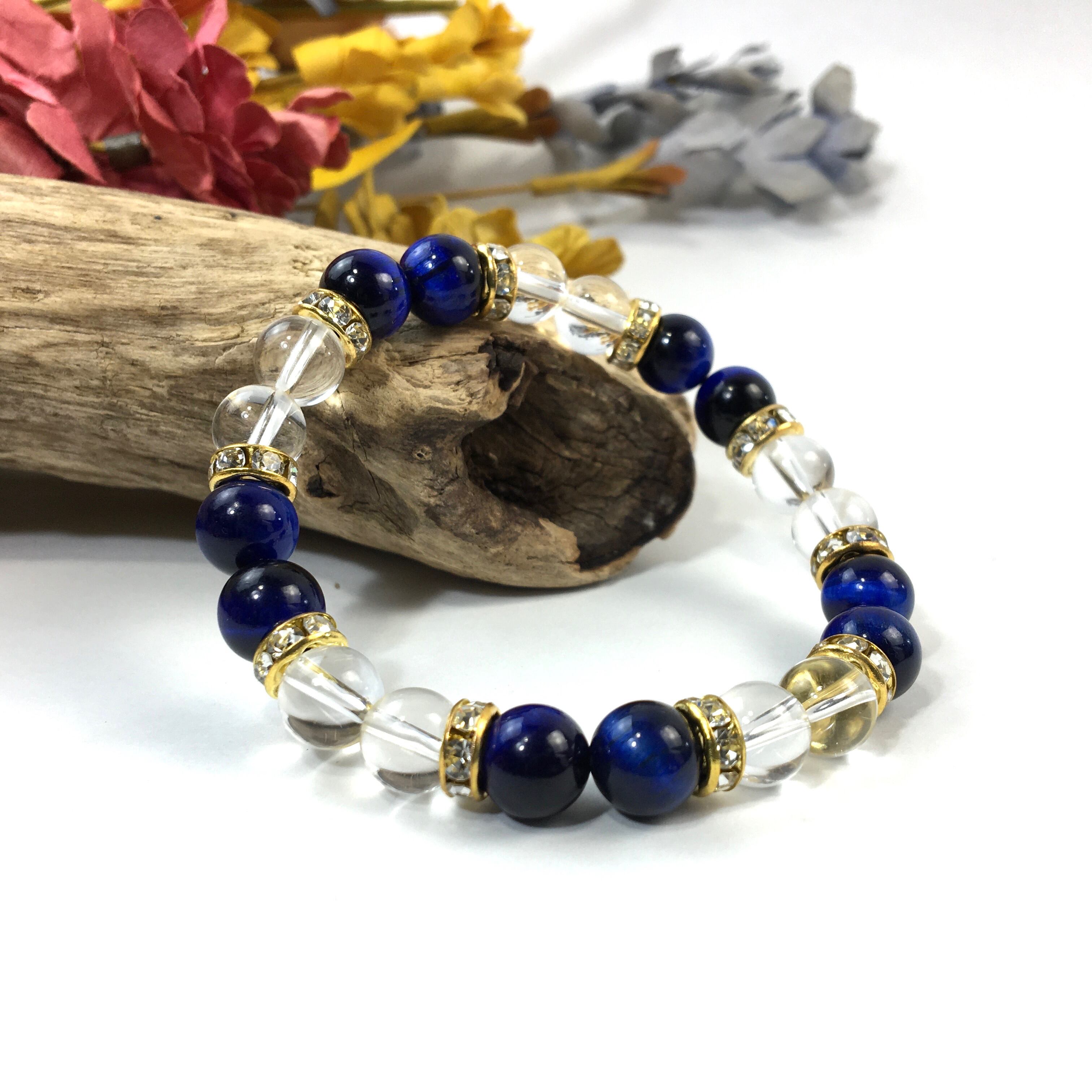 水晶&ブルータイガーアイ パワーストーン ブレスレット 天然石 8mm(ゴールド)レディース 女性 数珠ブレス 開運 プレゼント ギフト
