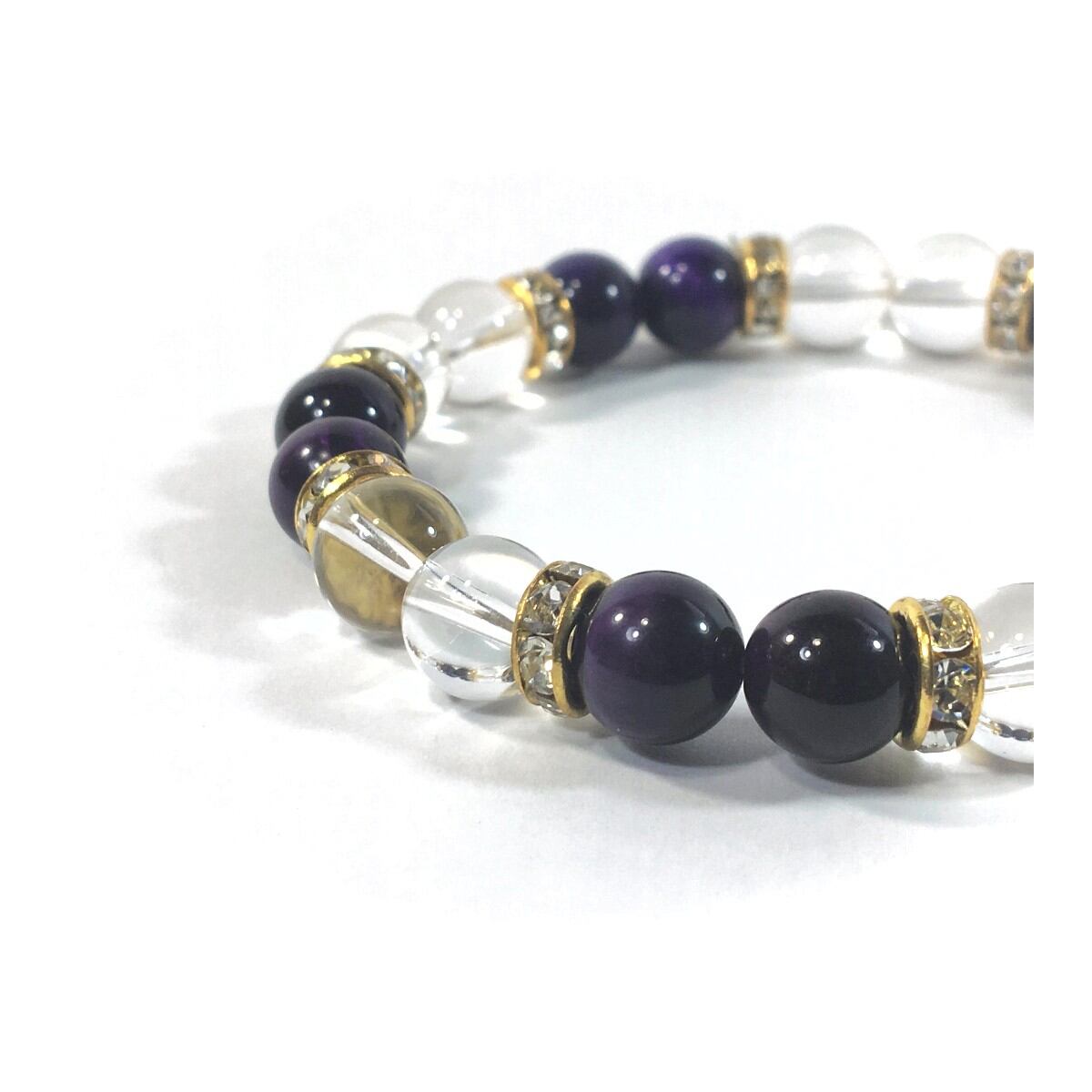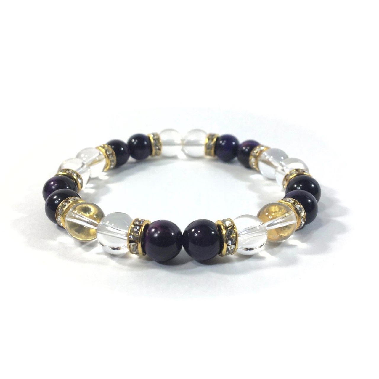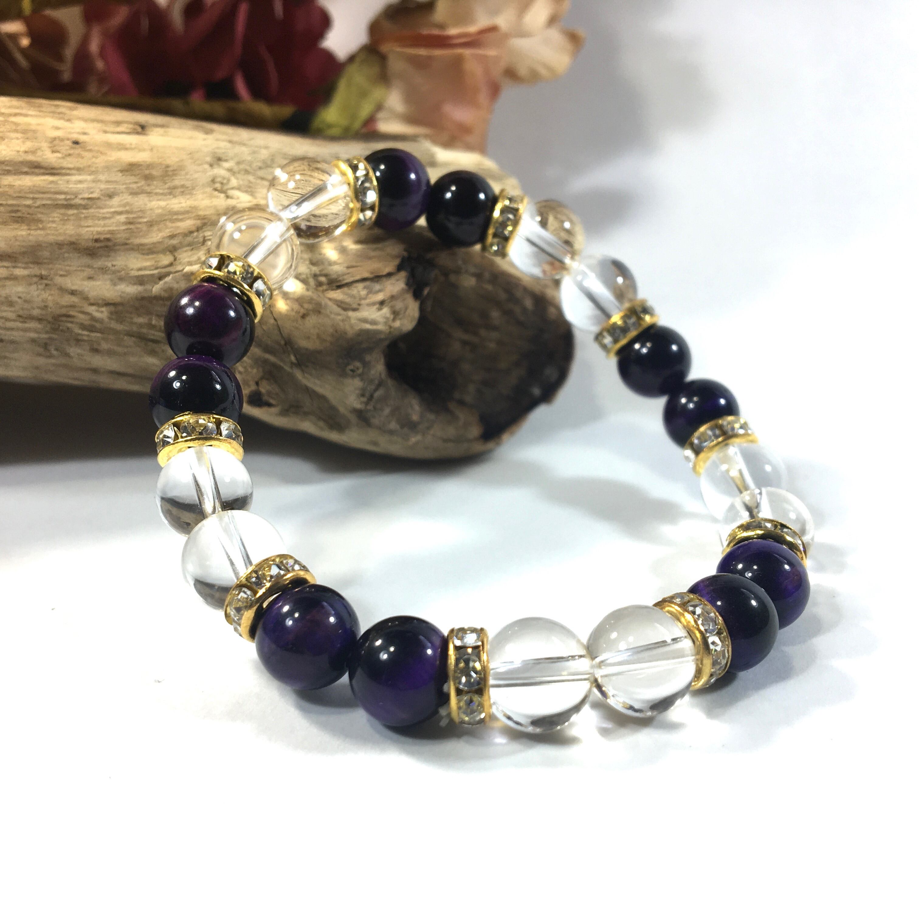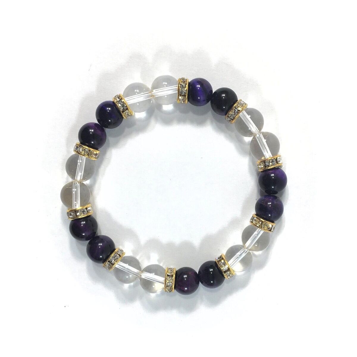 水晶&パープルタイガーアイ パワーストーン ブレスレット 天然石 8mm(ゴールド)レディース 女性 数珠ブレス 開運 プレゼント ギフト