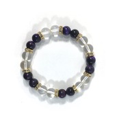 こちらは、8mm玉の水晶とパープルタイガーアイを使ったパワーストーンブレスレットです。シンプルなデザインでどんなコーディネートにも合わせやすいデザインに仕上げています。サイズは内周約15cmです。気になる方は是非この機会にどうぞ。