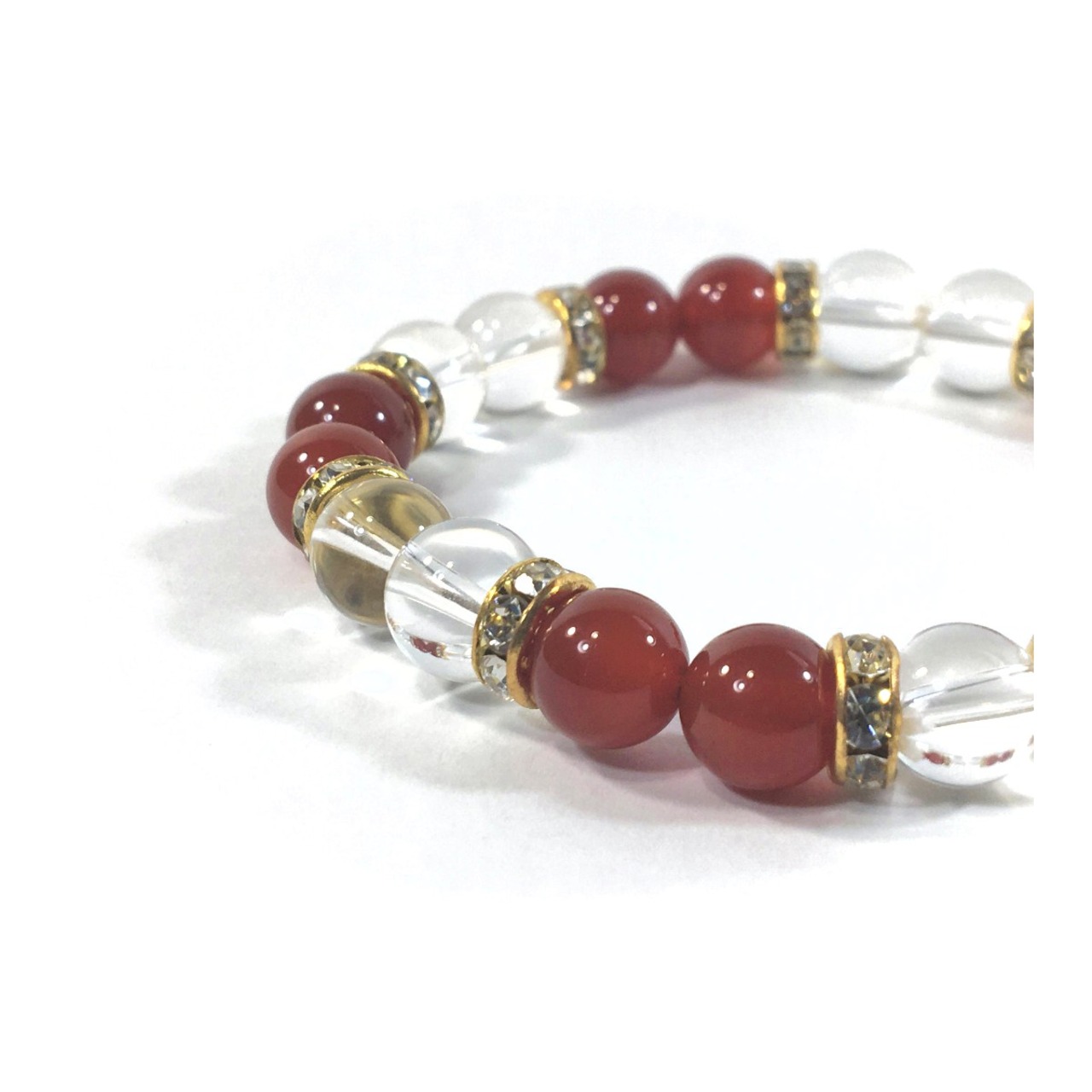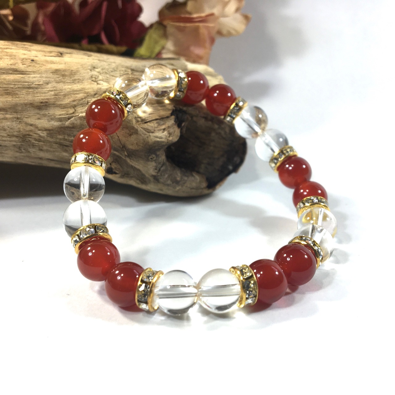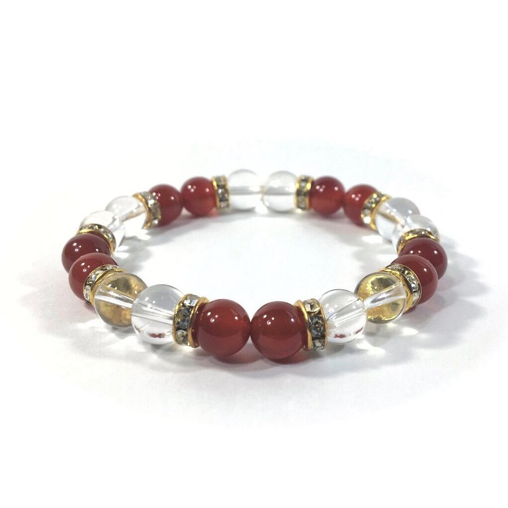 水晶&赤瑪瑙 パワーストーン ブレスレット 天然石ブレスレット 8mm(ゴールド)レディース 女性 数珠ブレス 開運 プレゼント ギフト