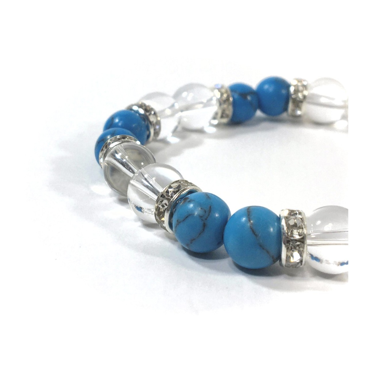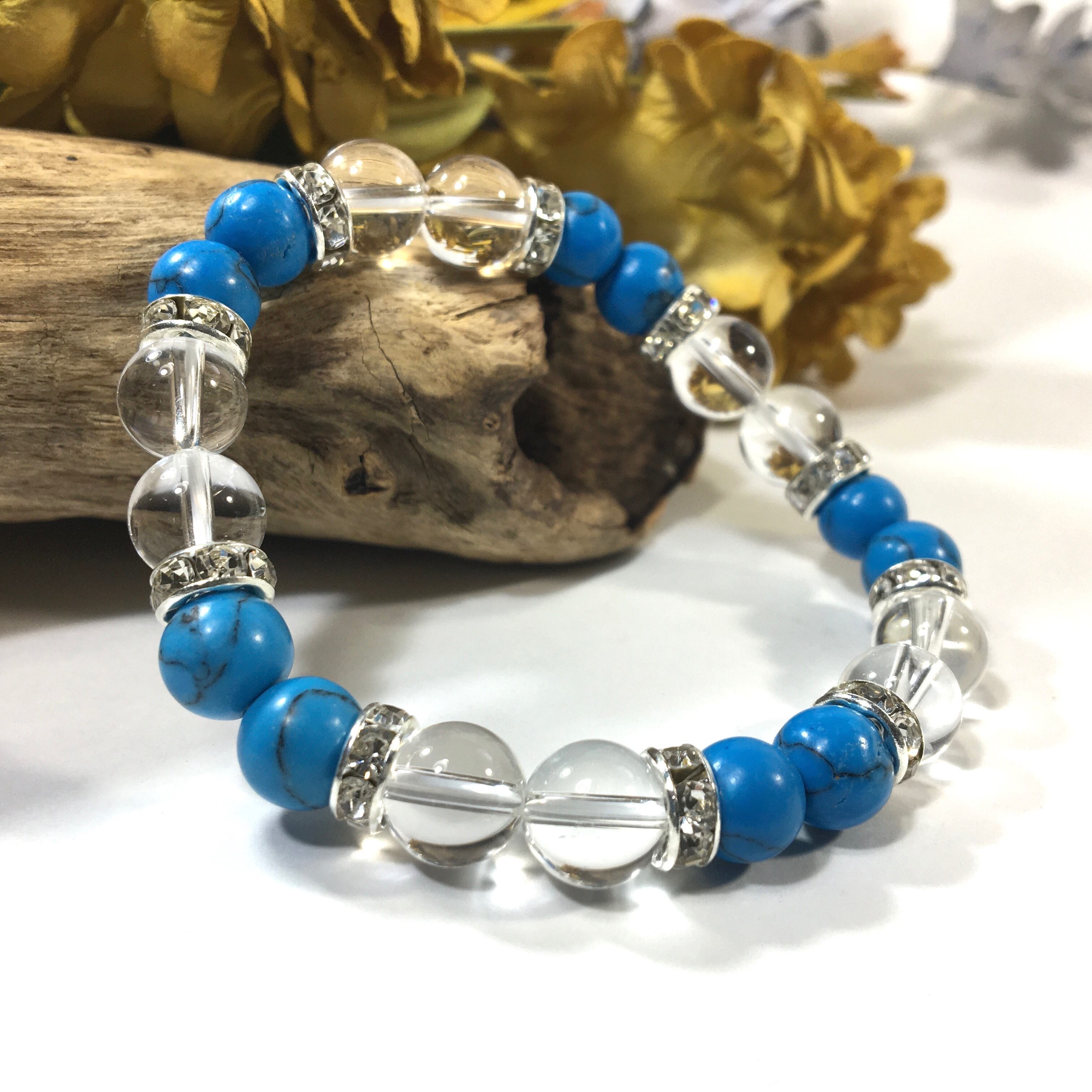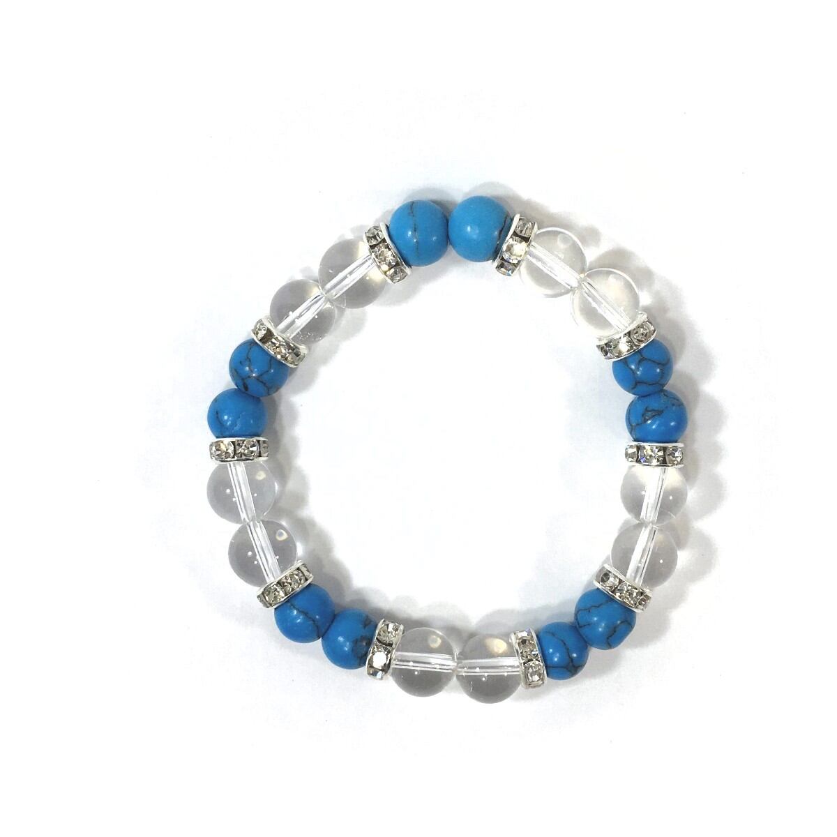 水晶&ターコイズ パワーストーン ブレスレット 8mm(シルバー)レディース 女性 数珠ブレス 開運 プレゼント ギフト #1