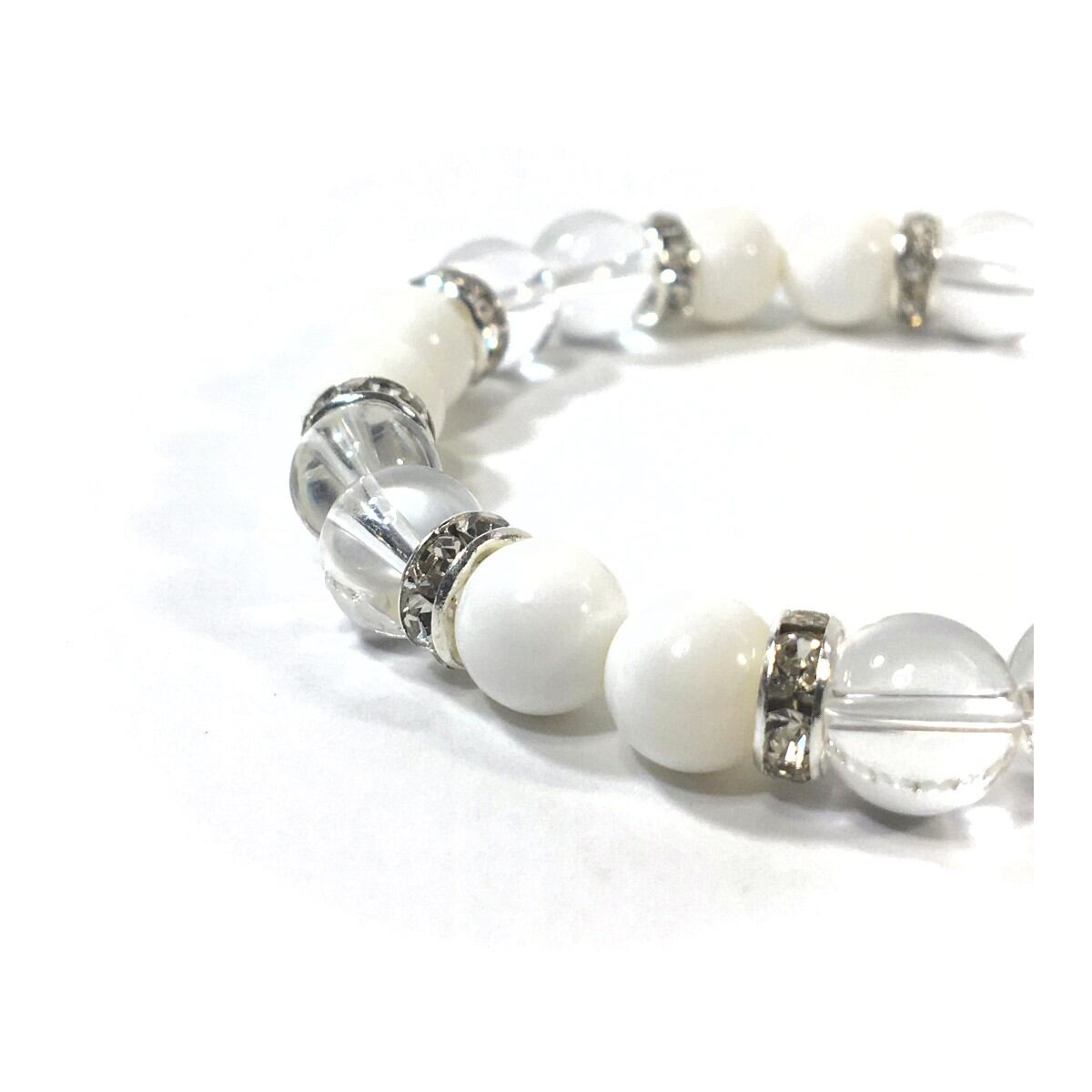 水晶&ホワイトオニキス パワーストーン ブレスレット 天然石 8mm(シルバー)レディース 女性 数珠ブレス 開運 プレゼント ギフト