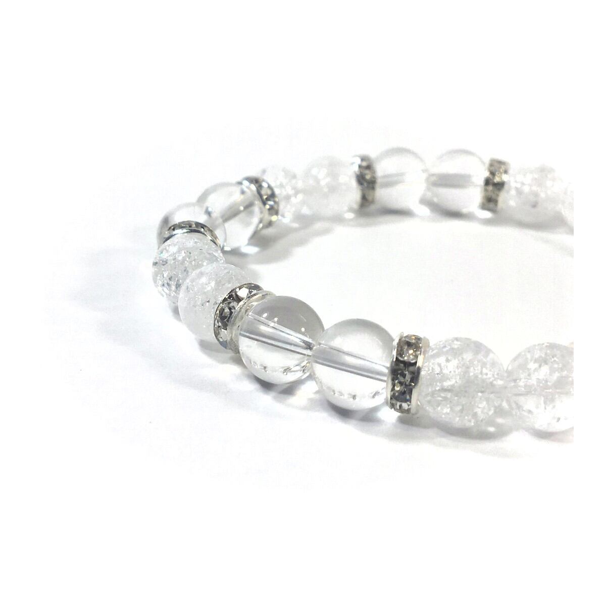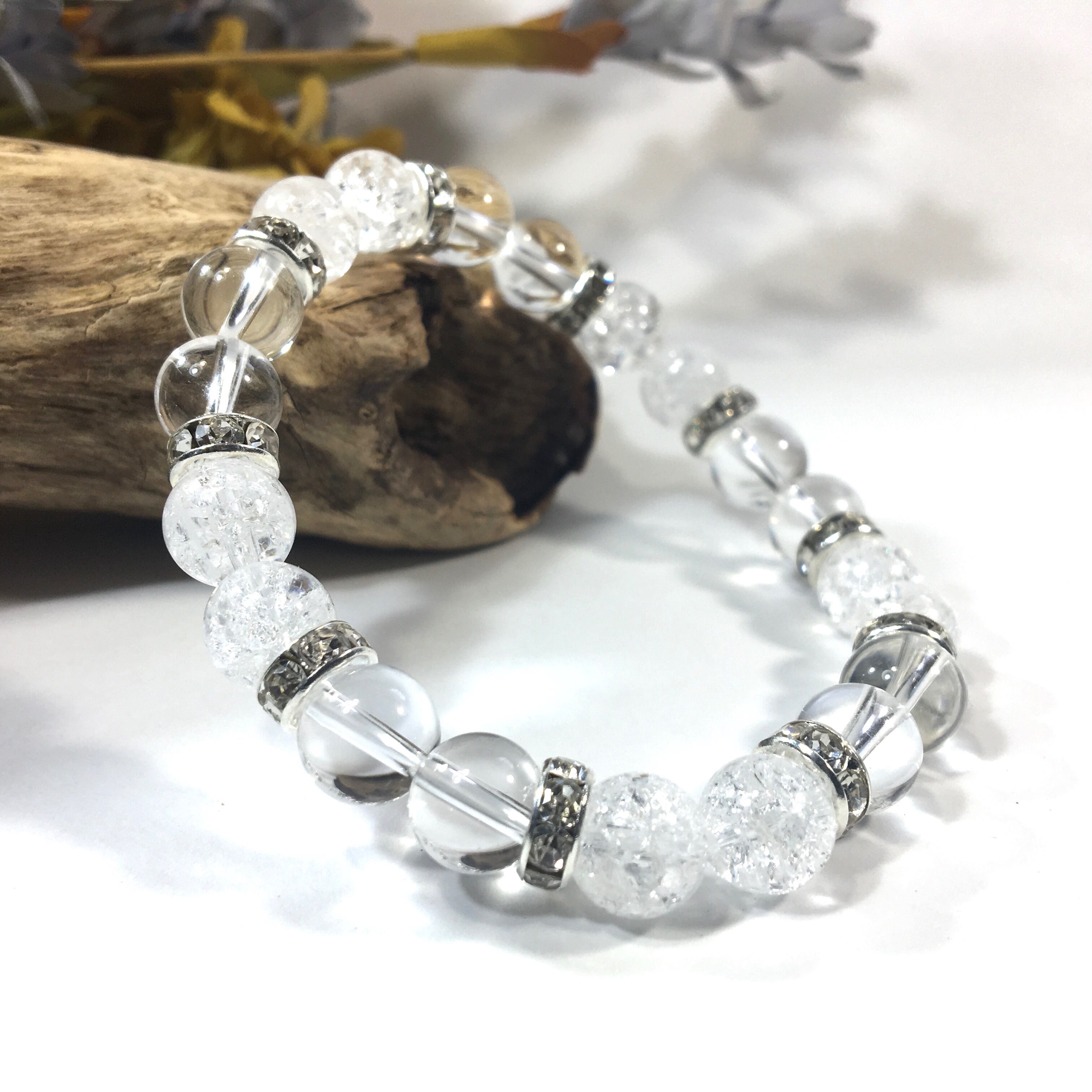 水晶&クラック水晶 パワーストーン ブレスレット 天然石 8mm(シルバー)レディース 女性 数珠ブレス 開運 プレゼント ギフト