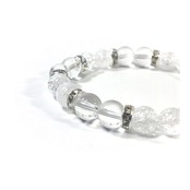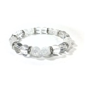 こちらは、8mm玉の水晶とクラック水晶を使ったパワーストーンブレスレットです。シンプルなデザインでどんなコーディネートにも合わせやすいデザインに仕上げています。サイズは内周約15cmです。気になる方は是非この機会にどうぞ。