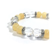 こちらは、8mm玉の水晶とアラゴナイトを使ったパワーストーンブレスレットです。シンプルなデザインでどんなコーディネートにも合わせやすいデザインに仕上げています。サイズは内周約15cmです。気になる方は是非この機会にどうぞ。