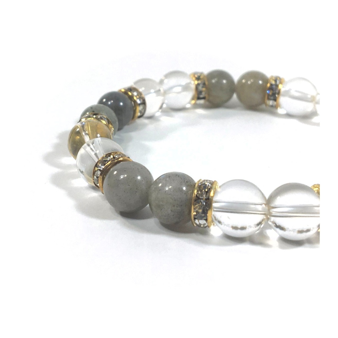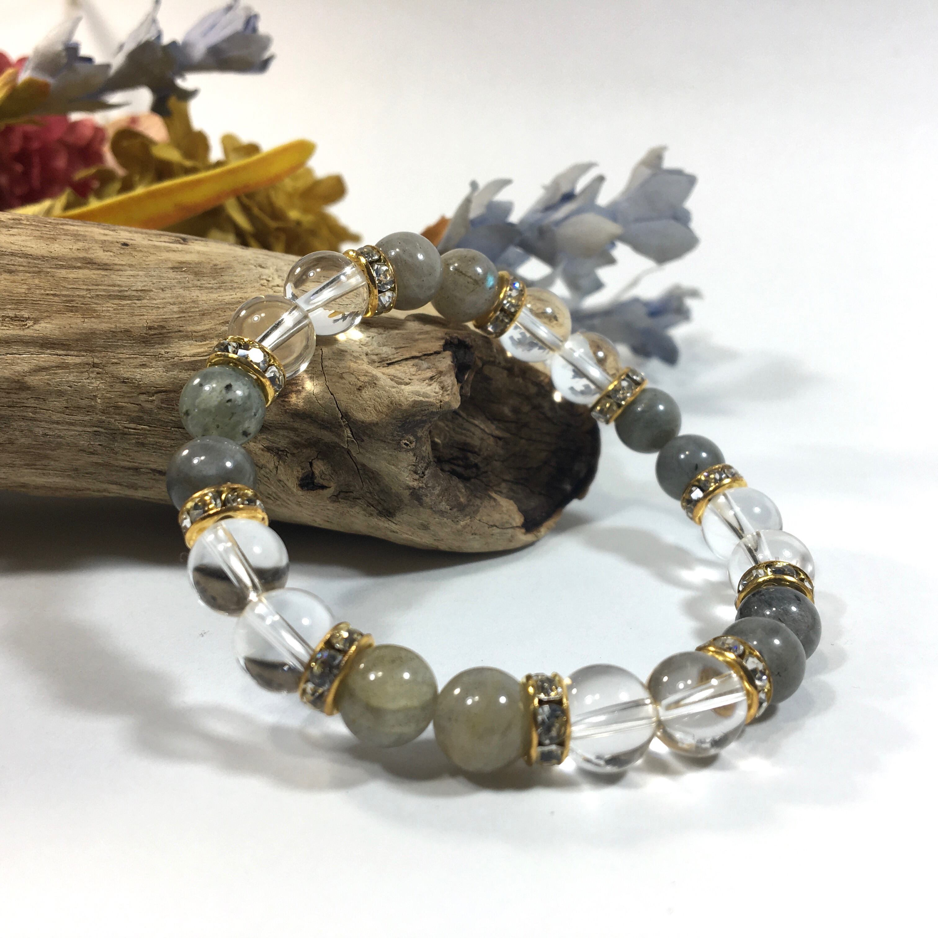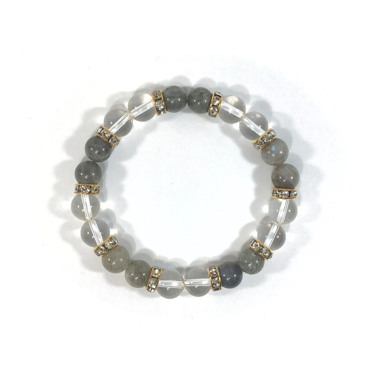 水晶&ラブラドライト パワーストーン ブレスレット 天然石ブレスレット 8mm(ゴールド)レディース 女性 数珠ブレス 開運 プレゼント ギフト
