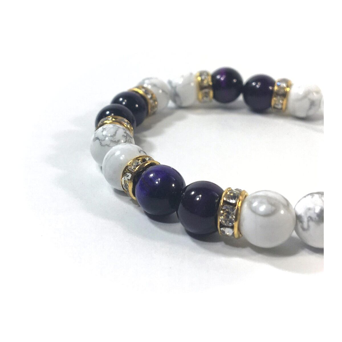 ハウライト&パープルタイガーアイ パワーストーン ブレスレット 天然石 8mm(ゴールド)レディース 女性 数珠ブレス 開運 プレゼント ギフト
