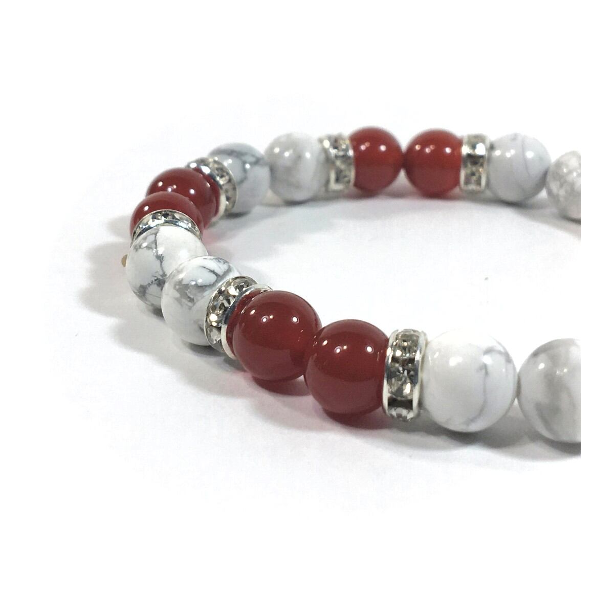 ハウライト&赤瑪瑙 パワーストーン ブレスレット 天然石ブレス 8mm(シルバー)レディース 女性 数珠ブレス 開運 プレゼント ギフト