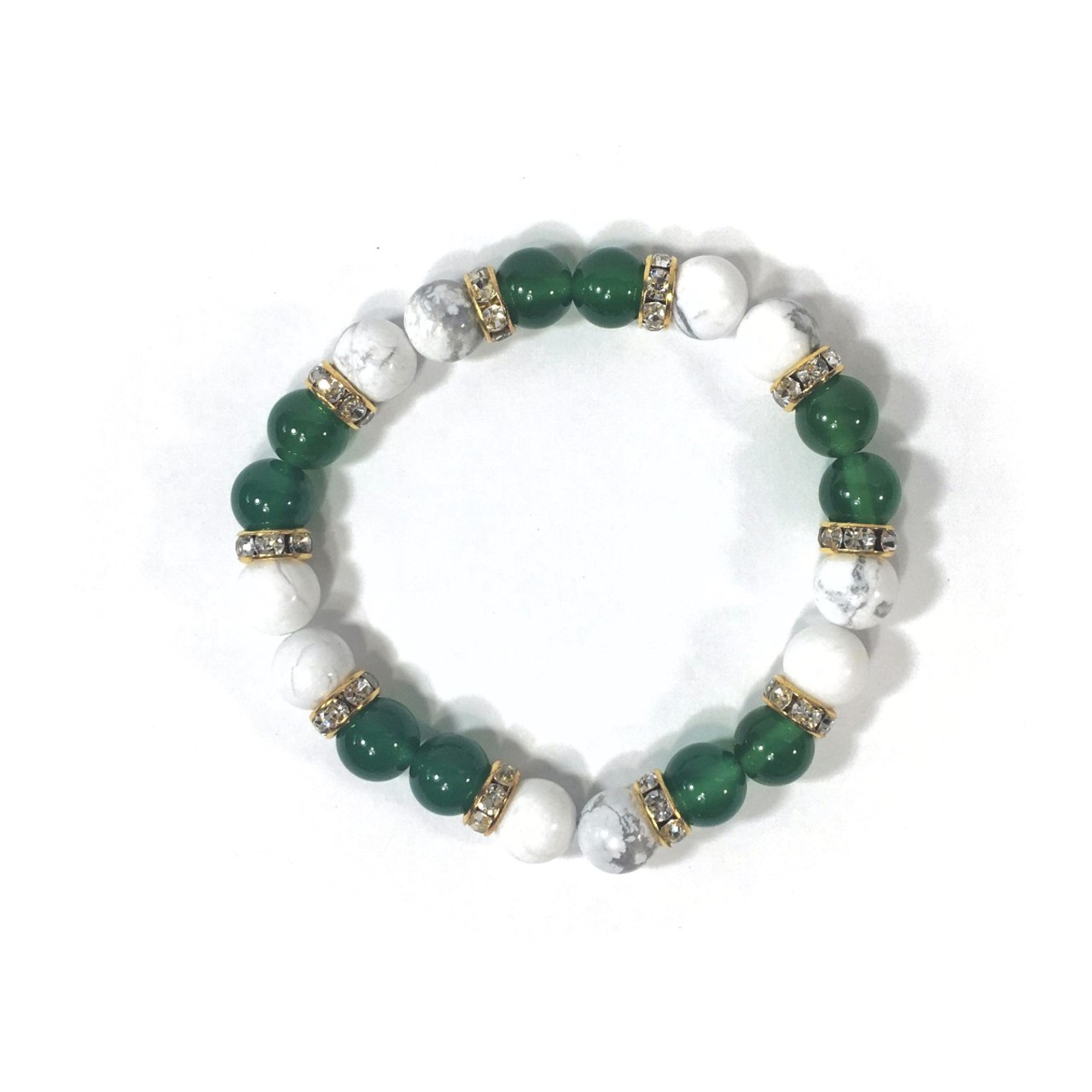 ハウライト&緑瑪瑙 パワーストーン ブレスレット 天然石ブレス 8mm(ゴールド)レディース 女性 数珠ブレス 開運 プレゼント ギフト